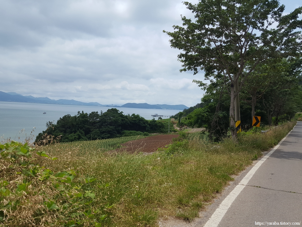 가끔씩 득량도와 득량만 바다, 아름다운 해안선을 볼 수 있는 장소도 지나면서 내리막길을 이어간다.
