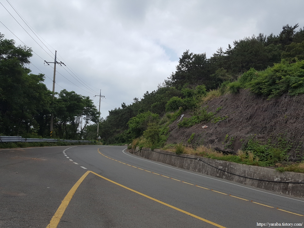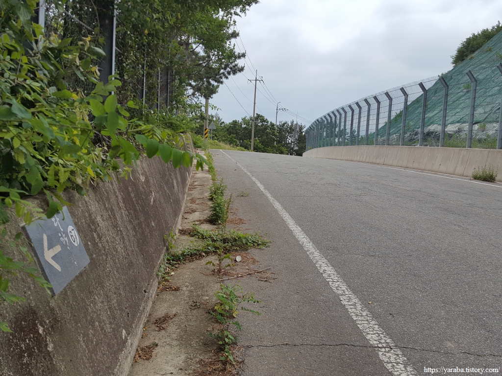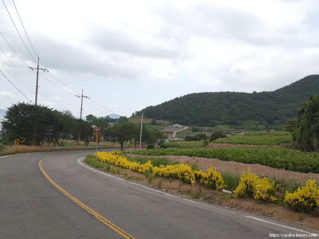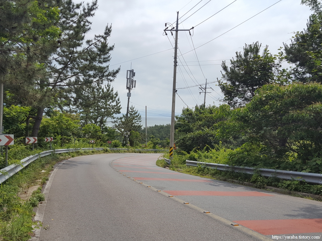 언덕을 올라와 선소어촌체험장을 벗어난 길은 다시 공룡로 도로를 따라 남서 방향으로 내려간다.