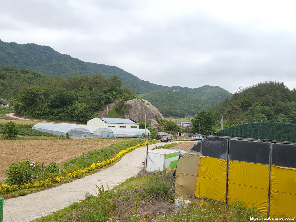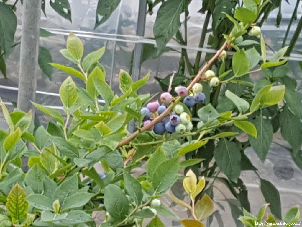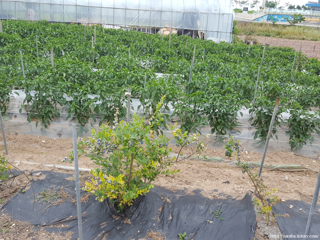 청포 마을을 지나는데 한 농가의 밭이 시선을 이끈다. 고추 밭 옆에 블루베리를 몇 그루 심었는데 블루베리들이 올망졸망 익어가고 있었다.