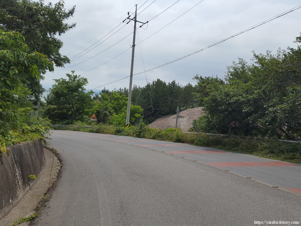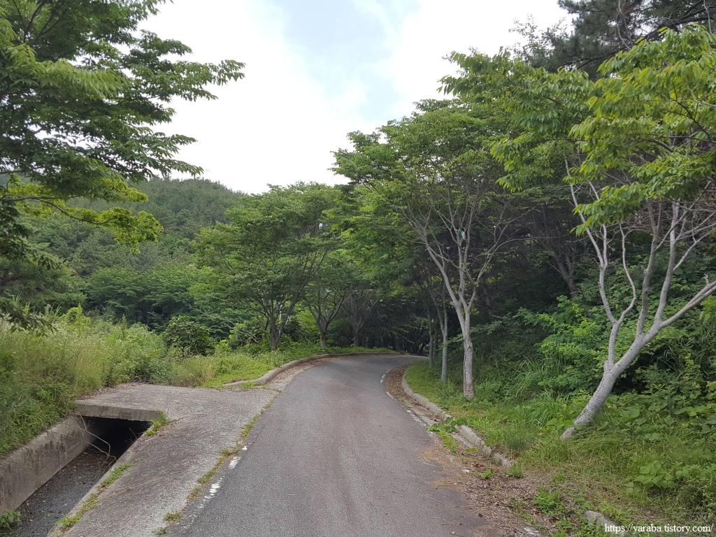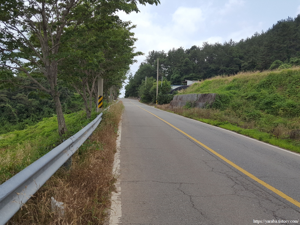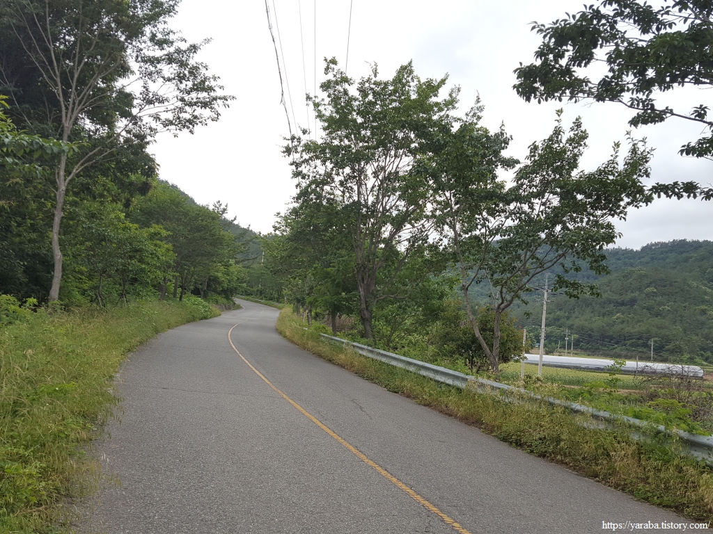 큰재라는 고개 이름답게 고개를 내려가는 길은 경사도가 있는 길이었다. 갓길이 넓지 않아 도보 여행자에게는 그렇게 안전한 길은 아니지만 그래도 내리막길은 언제나 좋다.