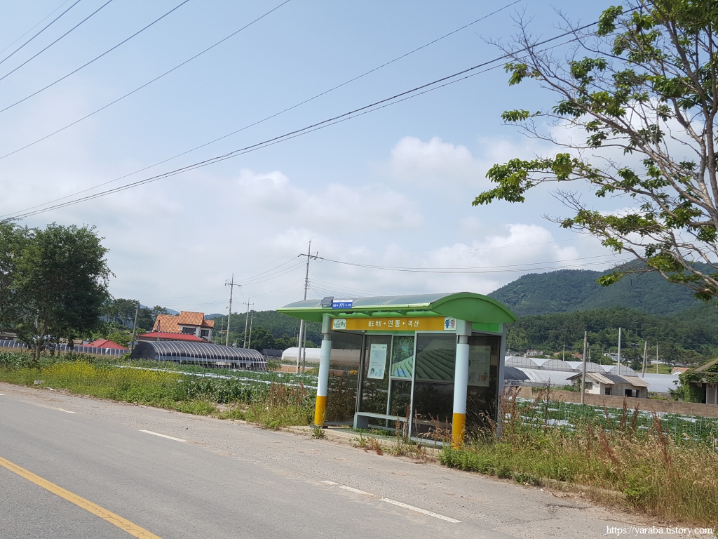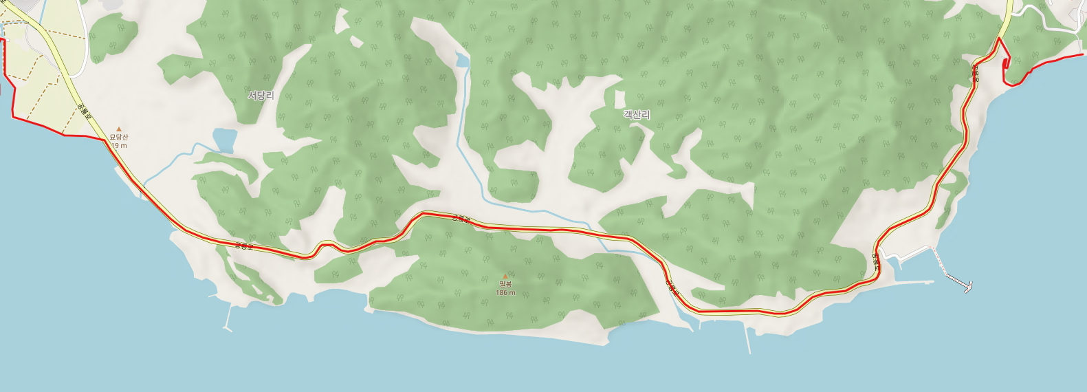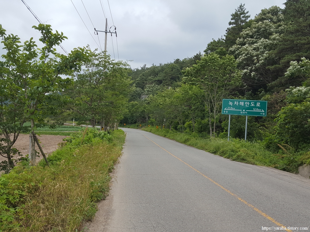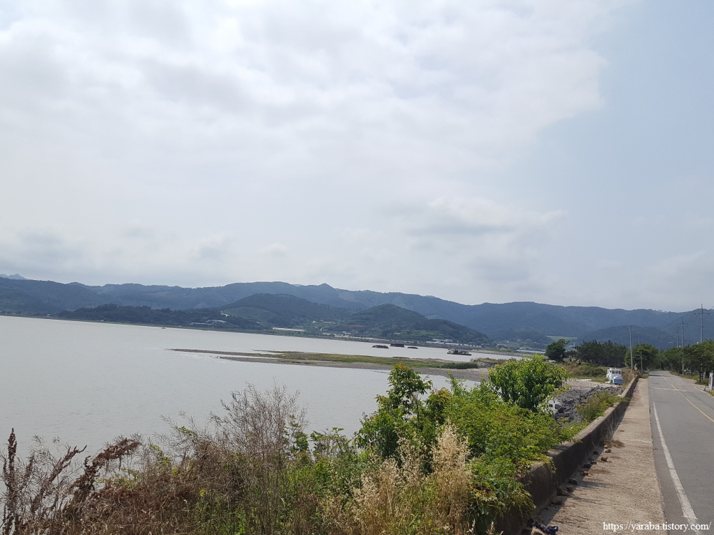 길은 득량면을 지나 회천면 객산리로 들어간다. 바다로는 회천면의 첫 마을인 청포 마을의 포구가 보이기 시작한다.