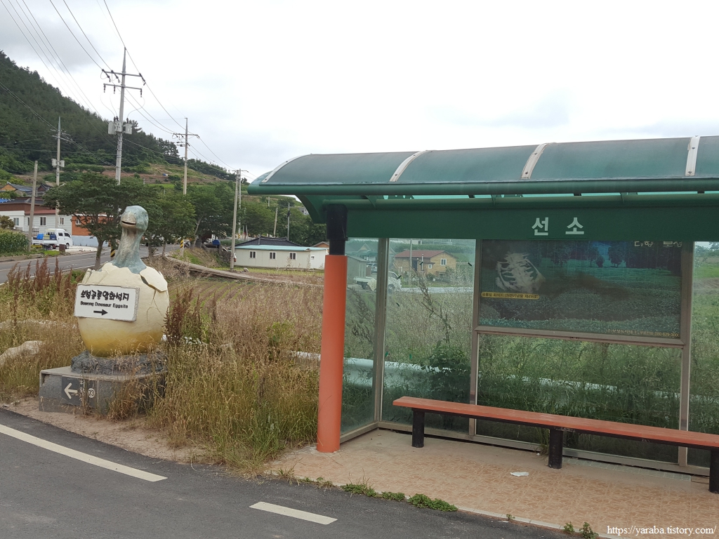 선소 마을 앞을 지나 청포 마을로 향하는 길, 선소항과 바다낚시공원이 한눈에 보인다. 우측 산 아래로 해변으로 나가면 공룡알 화석지가 있다.