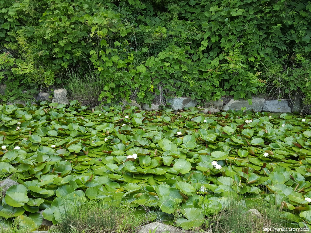 선소어촌체험마을 한쪽의 연못에서는 백련이 아름다운 자태를 뽐내고 있다. 따뜻한 남쪽나라인 이곳은 확실히 연꽃도 빨리 피었다.