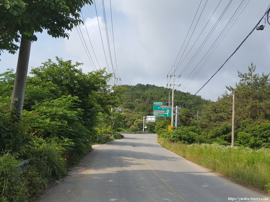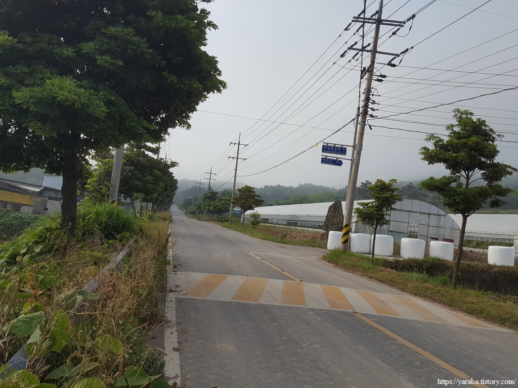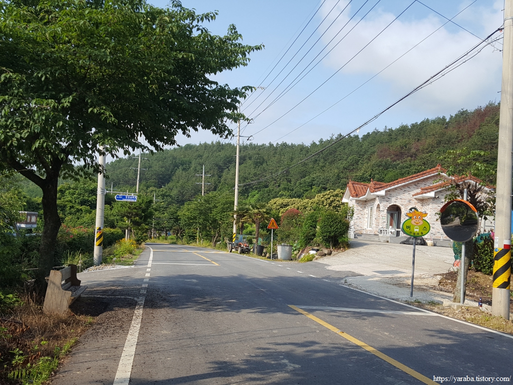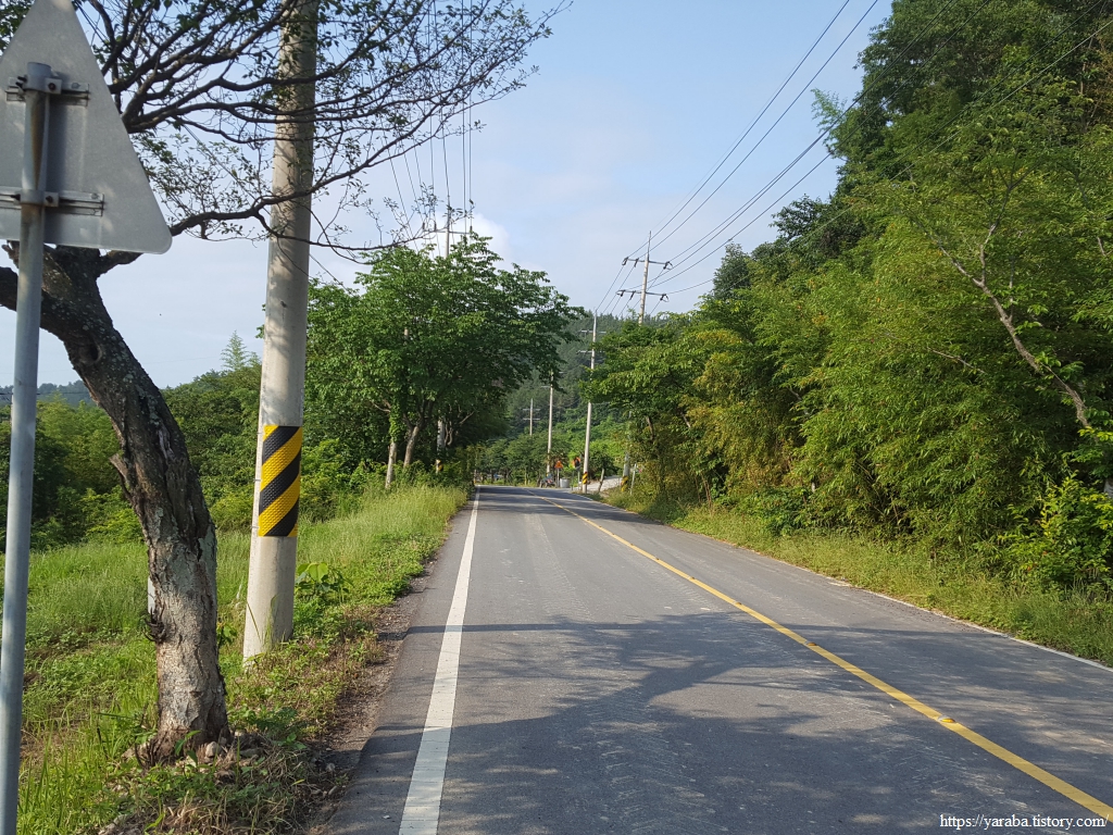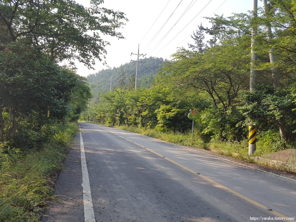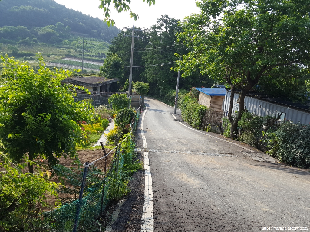 이제 원래의 남파랑길 경로를 만나서 덕암풍길로 도로로 올라가 산정 마을까지 남쪽으로 도로를 걷는다.