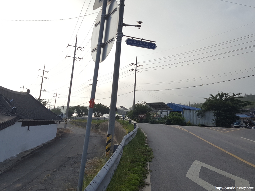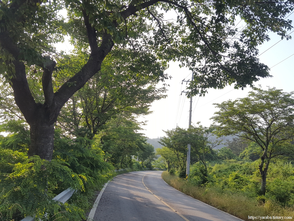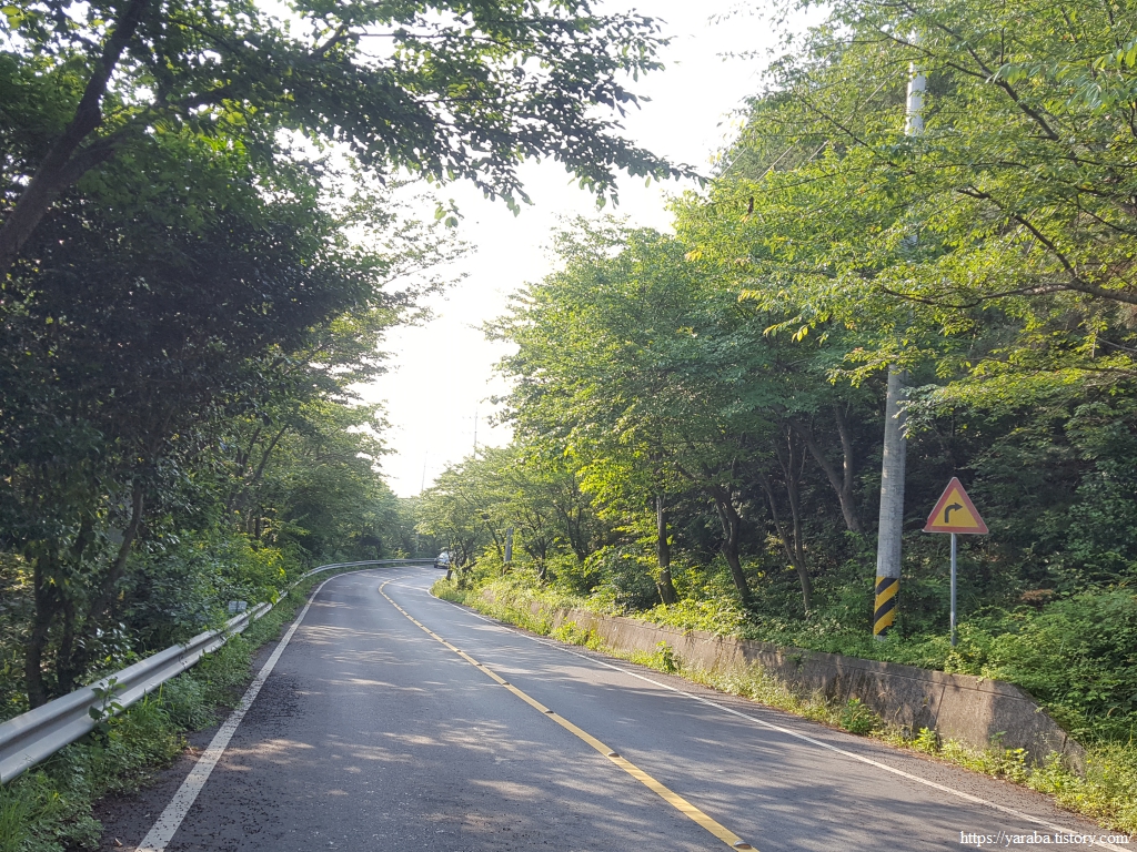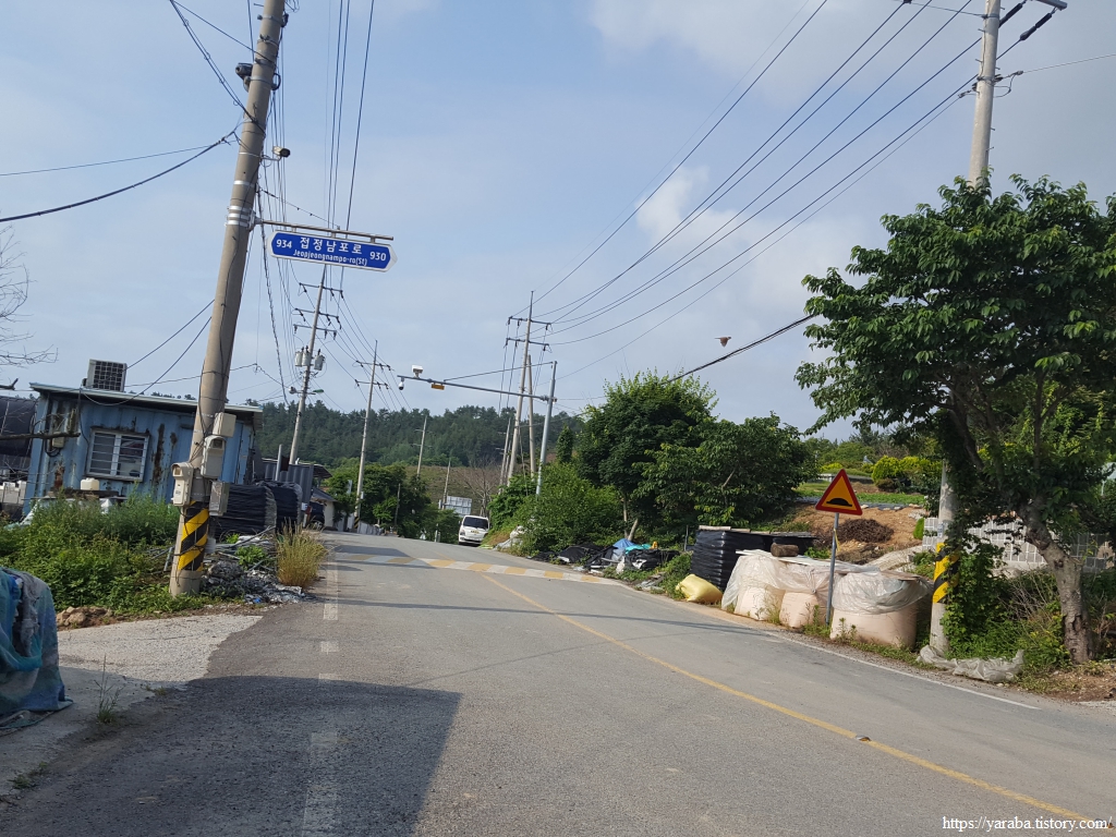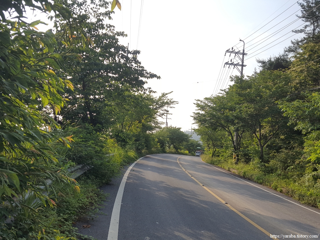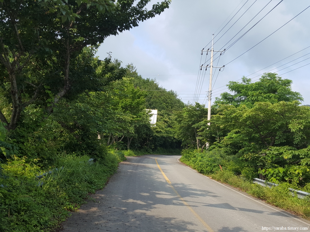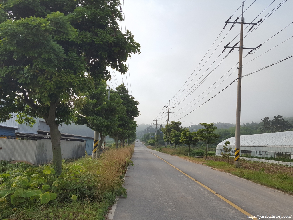 이제 원래의 남파랑길 경로를 만나서 덕암풍길로 도로로 올라가 산정 마을까지 남쪽으로 도로를 걷는다.