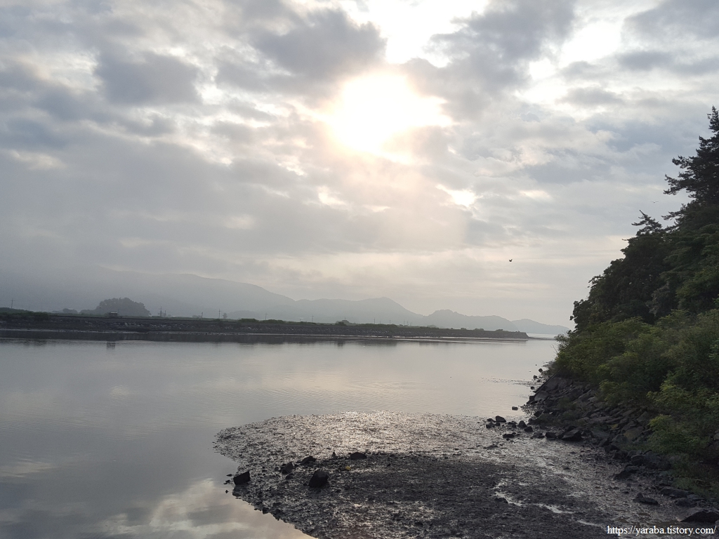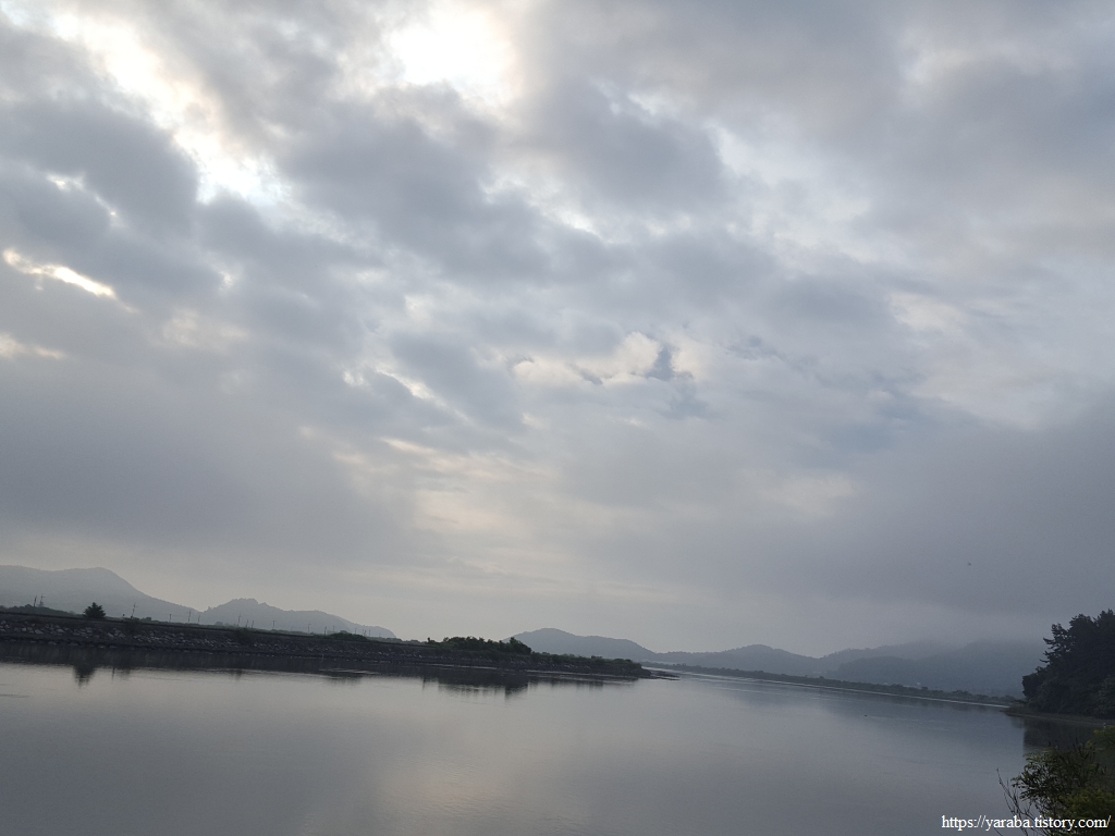 이른 아침에 만나는 신비로운 강변 풍경을 감상하다가 그만 길을 놓치고 말았다. 둑방길을 한참 가고서야 길을 잘못 가고 있음을 깨달았다. 그래도 조금 더 걸을 뿐이고 문제 될 것은 없었다. 은은하게 여명이 비치는 남상천 풍경이 일품이다.