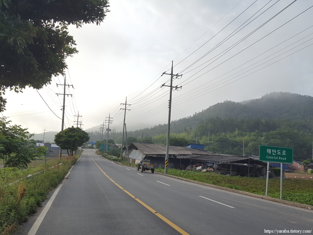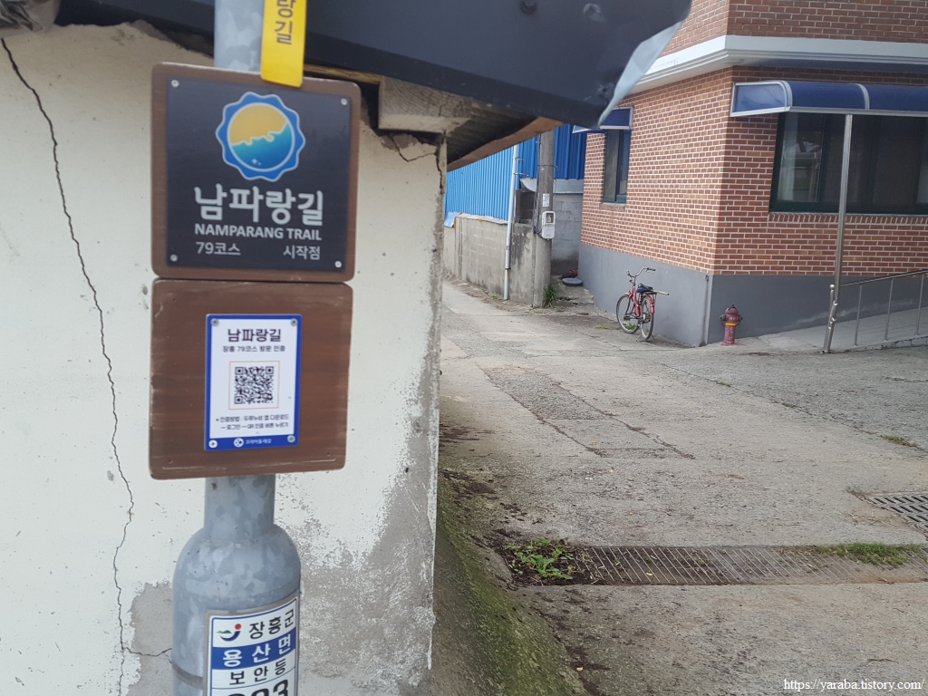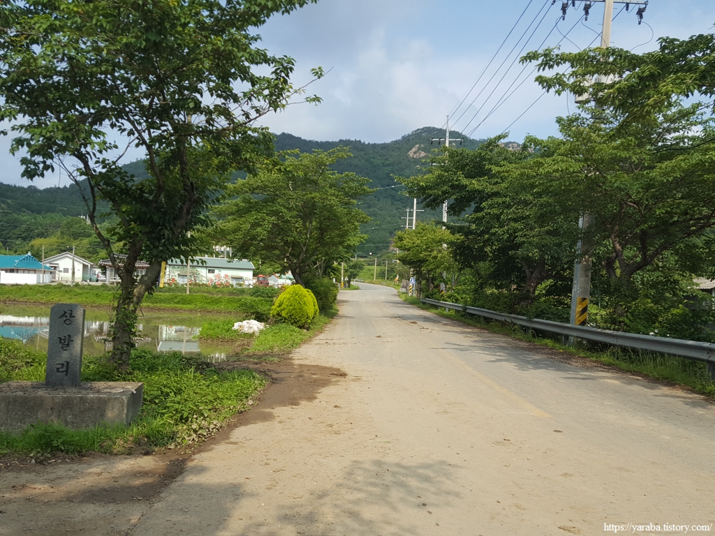 도로를 걷다 보면 우리가 앞으로 계속 걸어야 하는 정남진 해안로의 시작점을 만난다. 교차로에서 우회전하면 정남진 해안로를 걷어서 나중에 남파랑길과 합류하지만 남파랑길은 직진하여 상발 마을을 들러서 간다. 조금 돌아가는 길이기는 하다. 상발리 표식이 등장했다. 상발의 발(鉢)은 사발, 주발의 발과 같은 그릇의 의미다. 아마도 마을 지형을 표현한 것으로 보인다. 마을 앞바다의 무인도 자라섬이 상발 마을에 속한다고 한다.