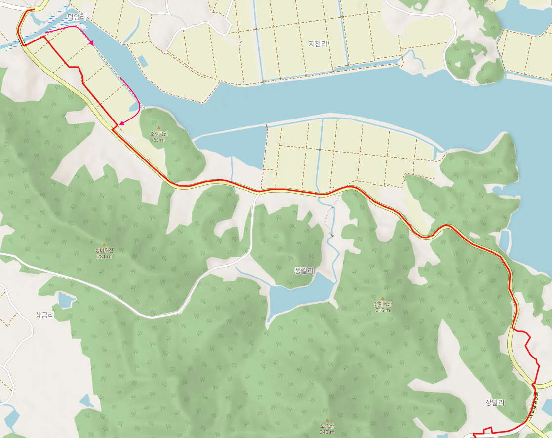 장흥을 북에서 남으로 길게 내려가는 79코스는 원등 마을을 벗어나 남상천 위로 놓인 덕암교를 건너는 것으로 시작한다.