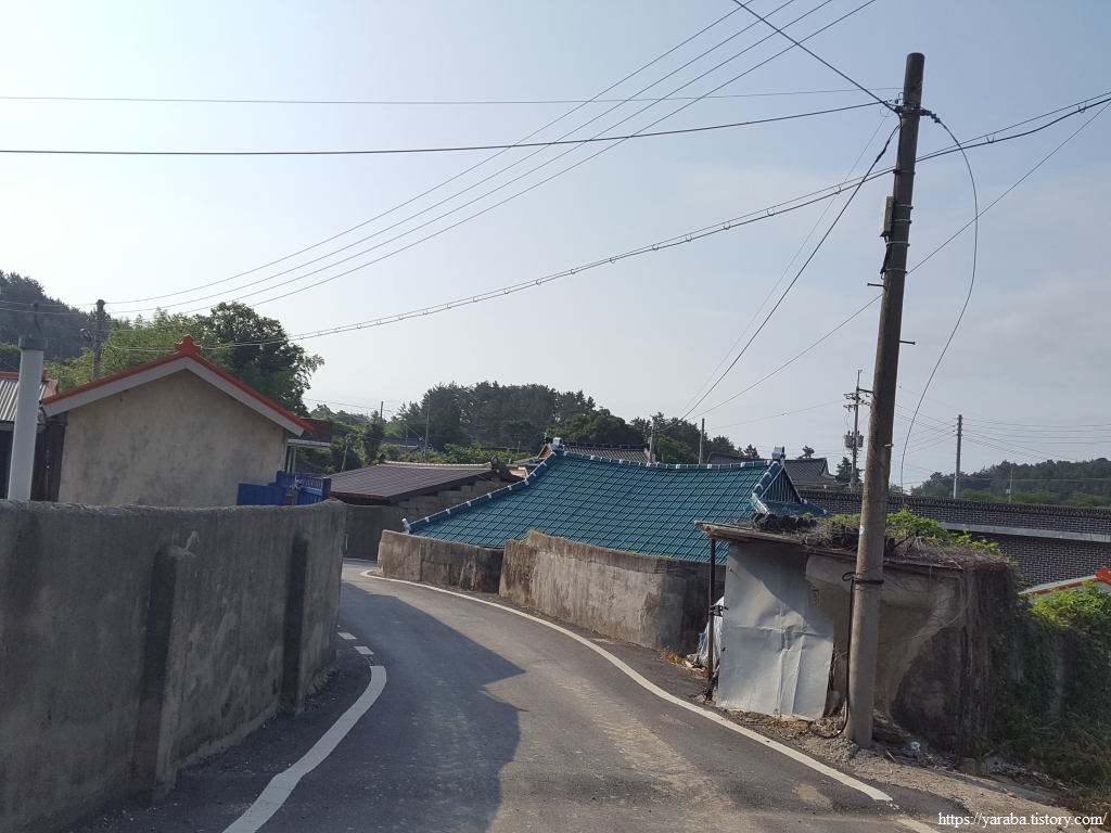 마을 끝자락에는 한옥으로 지은 커다란 건물이 두 개 있었는데 하나는 상발진료소이고 다른 하나는 2010년에 종합문화복지센터로 지은 것인데 잘 활용이 되지 않으니 최근에는 민박 및 펜션으로 바꾸어서 운영하고 있다고 한다. 산정 마을에 초등학교가 있었다고 하는데 폐교된 것을 활용한 것인 모양이다. 길은 산정삼거리에서 우측 길로 가면 된다. 좌측으로 가면 해안의 남포 마을로 가게 된다.