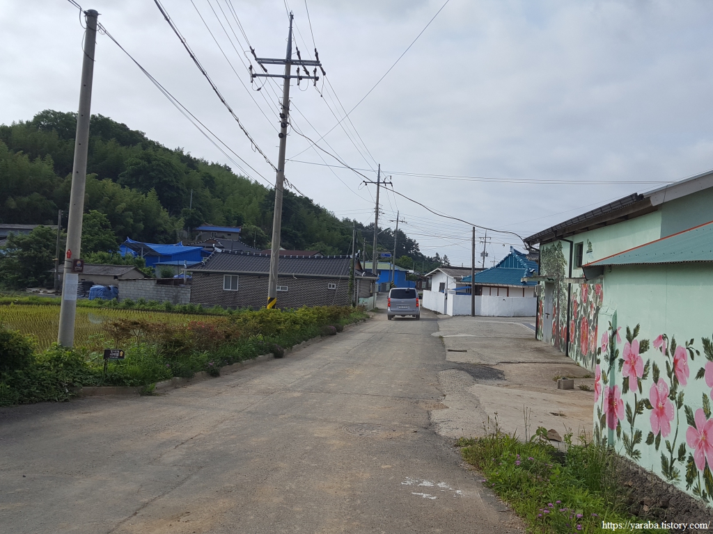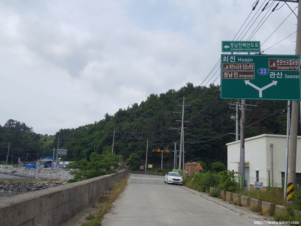 둑방길을 지난 길은 회진 방향 좌측길로 길을 이어간다. 이제는 관산읍 고마리로 접어들었다.