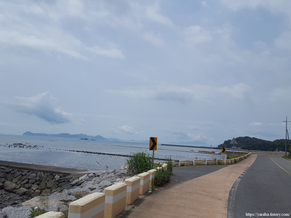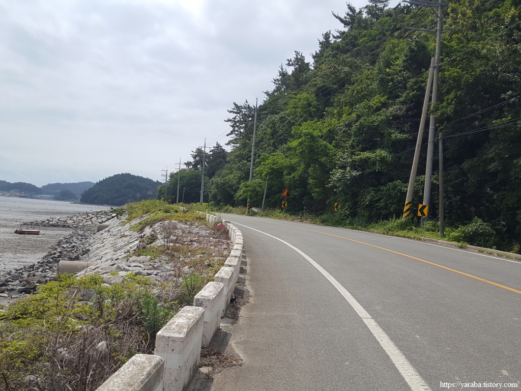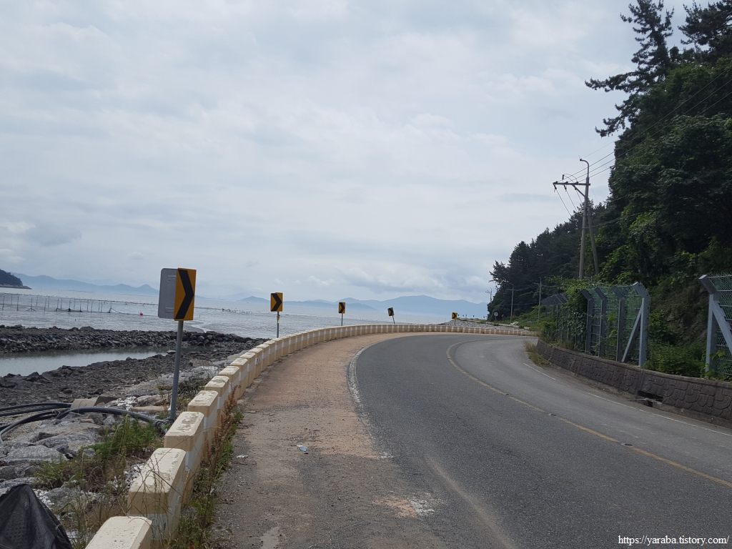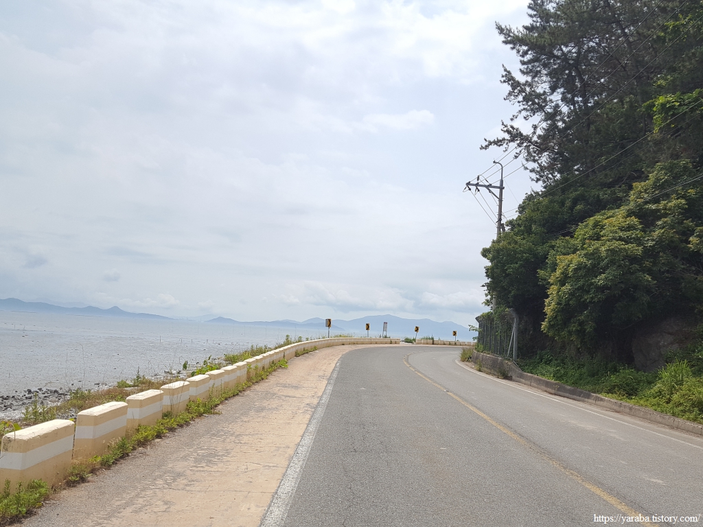 상발 마을의 자라섬을 뒤로하고 정남진 해안로를 걸어간다. 갓길도 넉넉해서 걷기에 참 좋은 길이다.