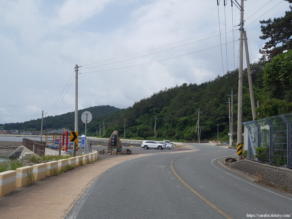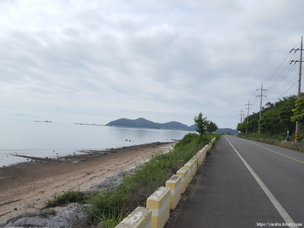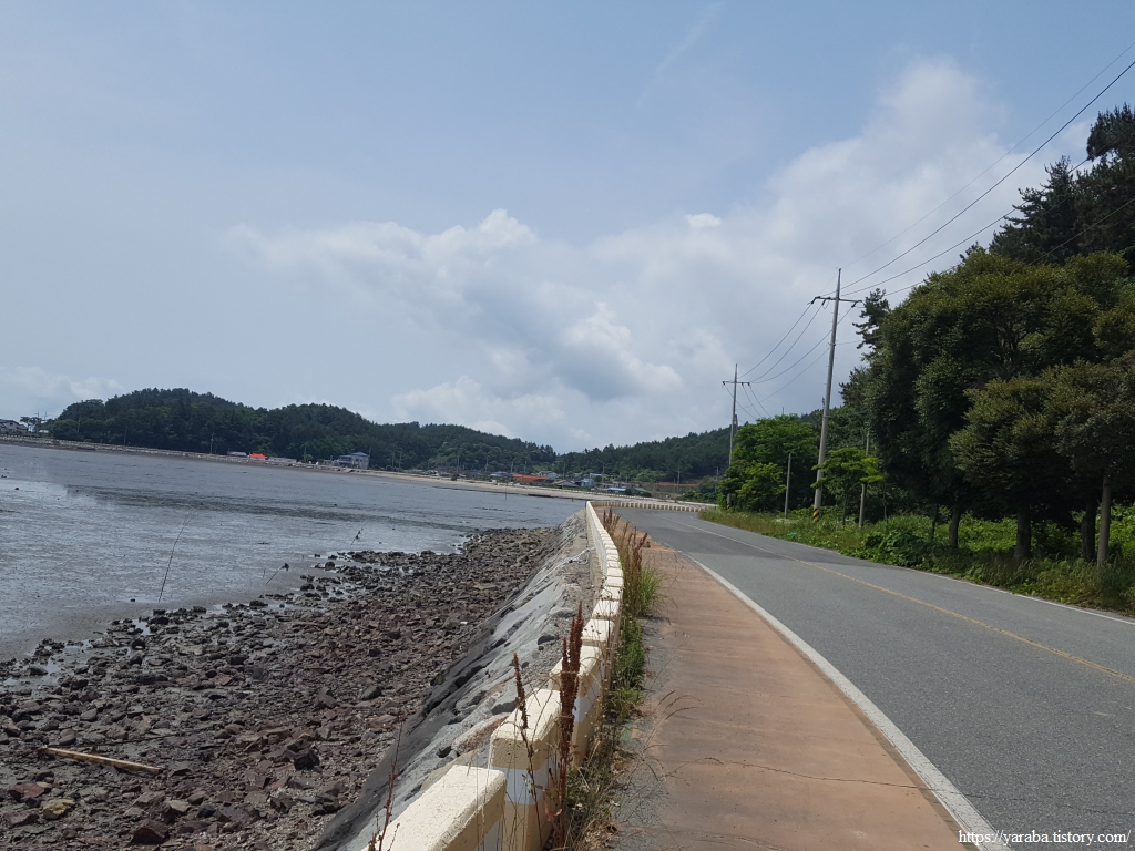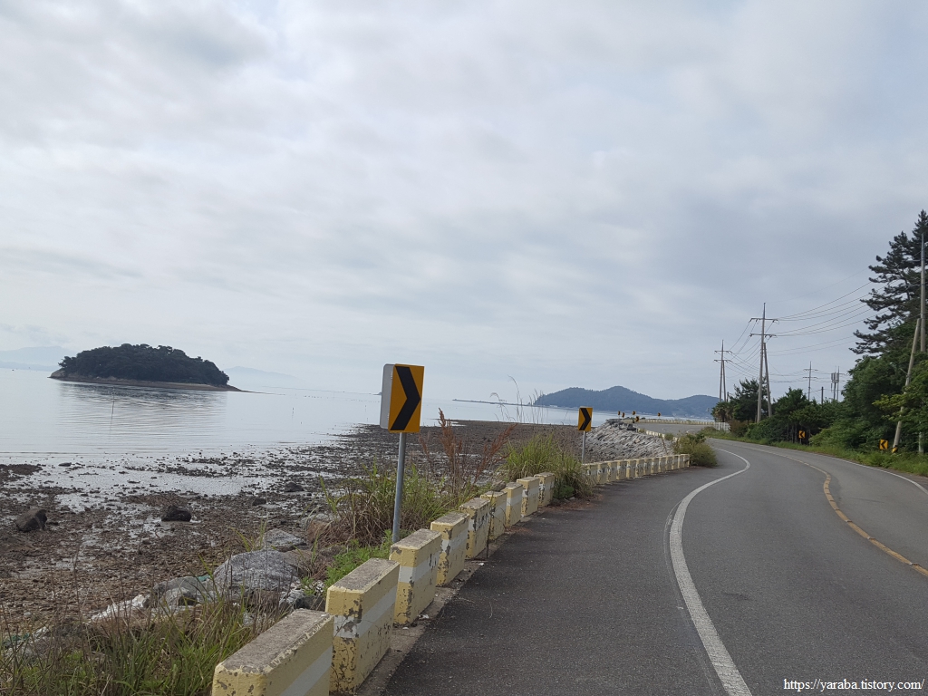 상발 마을의 자라섬을 뒤로하고 정남진 해안로를 걸어간다. 갓길도 넉넉해서 걷기에 참 좋은 길이다.
