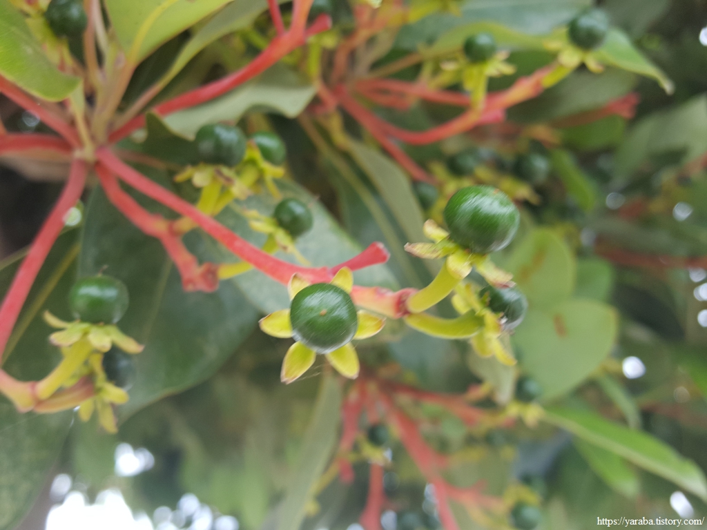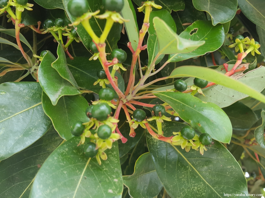 1Cm 정도의 열매인데 익으면 흑자색으로 변한다. 항균 작용이 있다고 한다.
