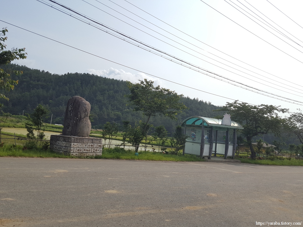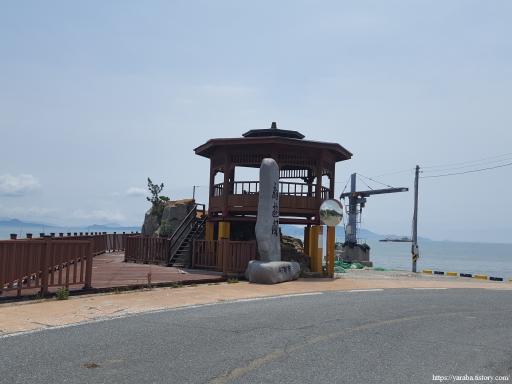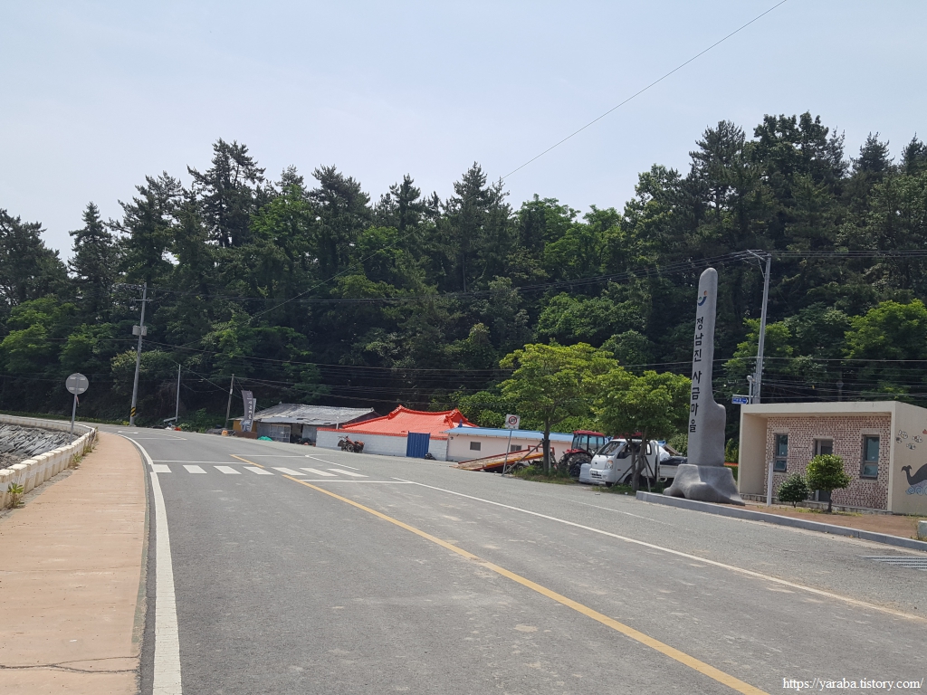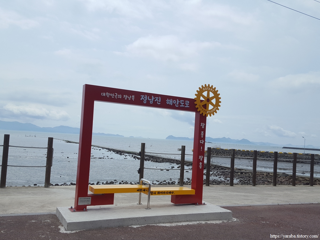 바위에 정남진이 새겨있고 포토존도 있는 곳을 만났지만 이곳은 좌표상의 정남진은 아니다. 국립지리원의 공인을 받은 정남진 위치는 앞으로 만날 삼산 방조제 초입에 있다. 이곳에서 아이스아메리카노 한잔하면서 잠시 휴식을 취하고 길을 이어갔다.
