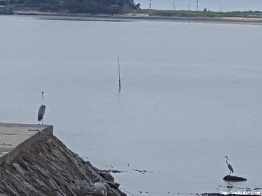 길은 장흥군 용산면 상발리를 지나 관산읍 죽청리로 들어간다. 천관산 앞에 있는 소산봉 봉우리도 시야에 들어온다. 포구에 앉아 있는 새 두 마리는 무엇을 하는 것일까? 먹이를 기다리는 것일까? 그냥 망중한인가? 관심을 가지고 지켜보려 하면 날아가 버린다.