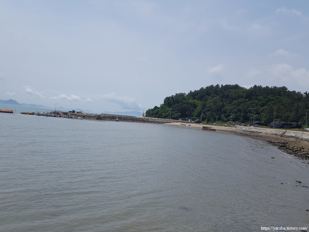 전동스쿠터를 타고 집으로 돌아가시던 아주머니들은 이 근처에서 작업하셨던 모양이다. 물이 들어오니 서둘러 집으로 가신 것 같다. 물이 들어오고 있어 지금은 뻘을 볼 수 없다.