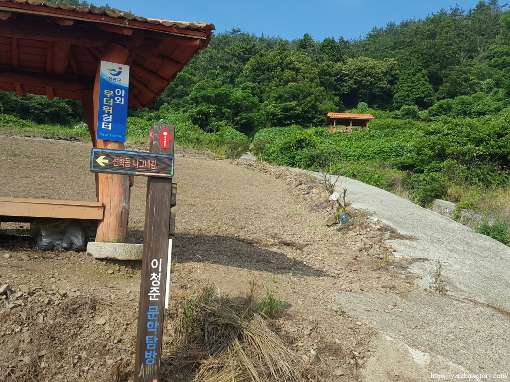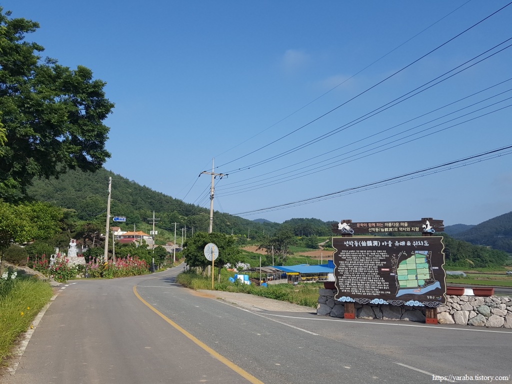 길은 마을 외곽을 돌아 산길로 향한다. 순흥 방조제가 만들어진 것이 일제 강점기이니 이청준 작가가 "선학동 나그네"를 집필할 때만 해도 마을 앞 포구로 물이 들어와 관음봉의 산 그림자가 물에 비치는 광경은 상상 속에서나 가능했을 것이다. 소설의 내용은 소리꾼 아버지와 눈먼 딸, 이복 오라비의 기구한 삶을 그리고 있다고 한다.