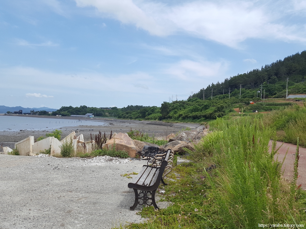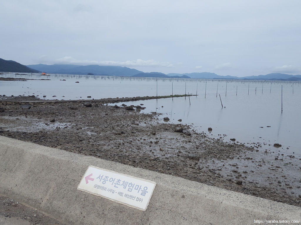 해안선을 돌아 북쪽으로 이동하는 길목에 바다 쪽으로 툭 튀어나간 공간이 있는데 서중어촌체험마을이 위치하고 있고 예전의 남파랑길은 저곳을 돌아서 간 모양이지만 지금은 저곳을 그냥 잘라서 간다.