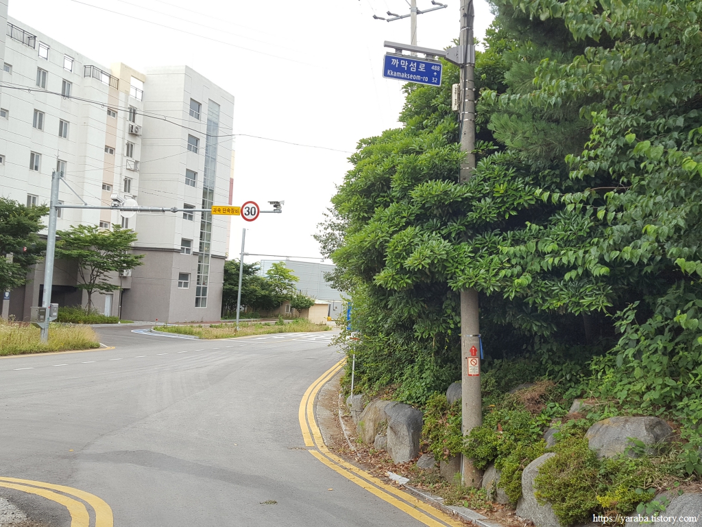 길은 초등학교 앞에서 까막섬로 도로를 만나면 남호 마을 직전까지 해안으로 이어지는 까막섬로 도로를 따라서 길을 이어간다.