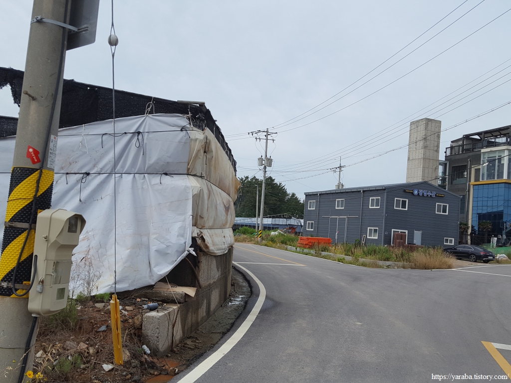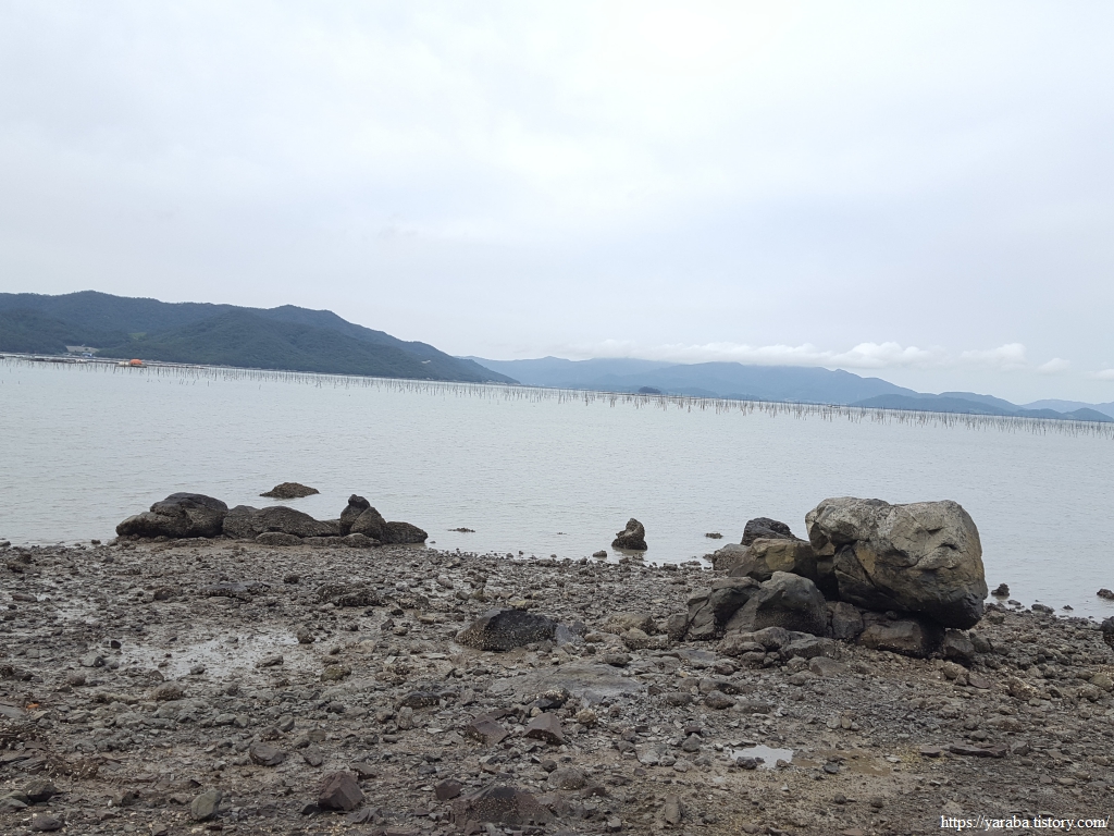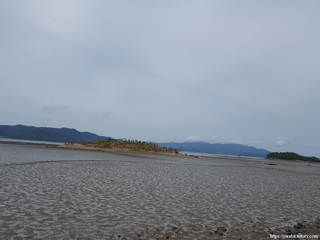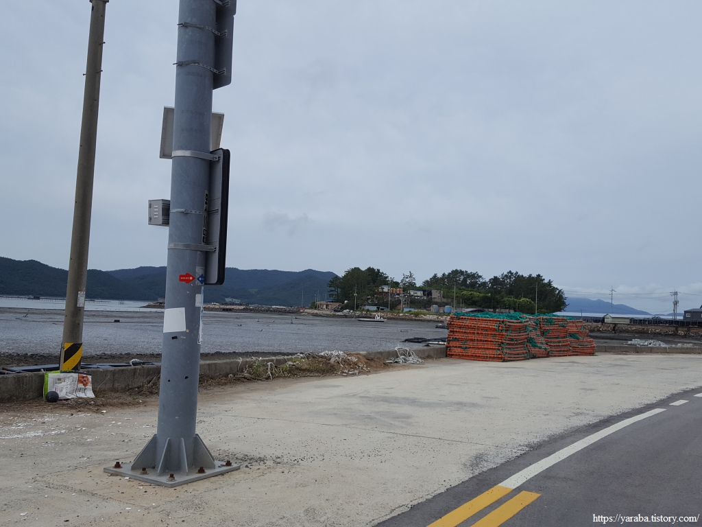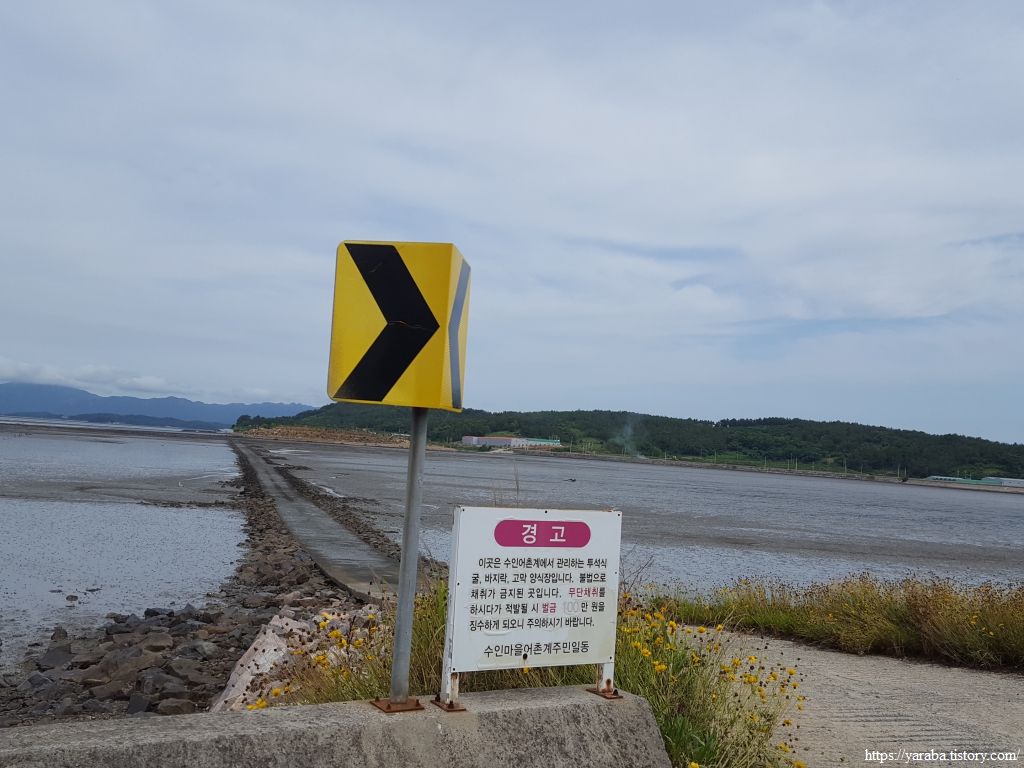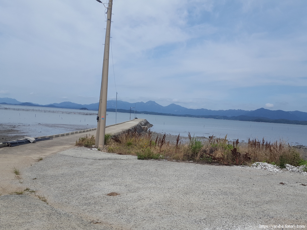 길을 지나는데 물 빠진 갯벌 너머로 내호도가 보인다. 갯일을 위한 갯벌길이 길게 내호도 방향으로 뻗어 있는데, 언뜻 보아서는 갯벌길이 섬과 연결된 것 아닌가 하는 생각도 든다. 혹시 길이 연결되어 있다면 어차피 길이 내호도 건너편까지 가야 하니 직선으로 가고 싶다는 유혹이 들었다. 그렇지만 안될 일이었다. 비슷한 경험을 순천 가는 길목에서도 한 적이 있어서 이번에는 빠르게 단념하고 길을 이어간다.