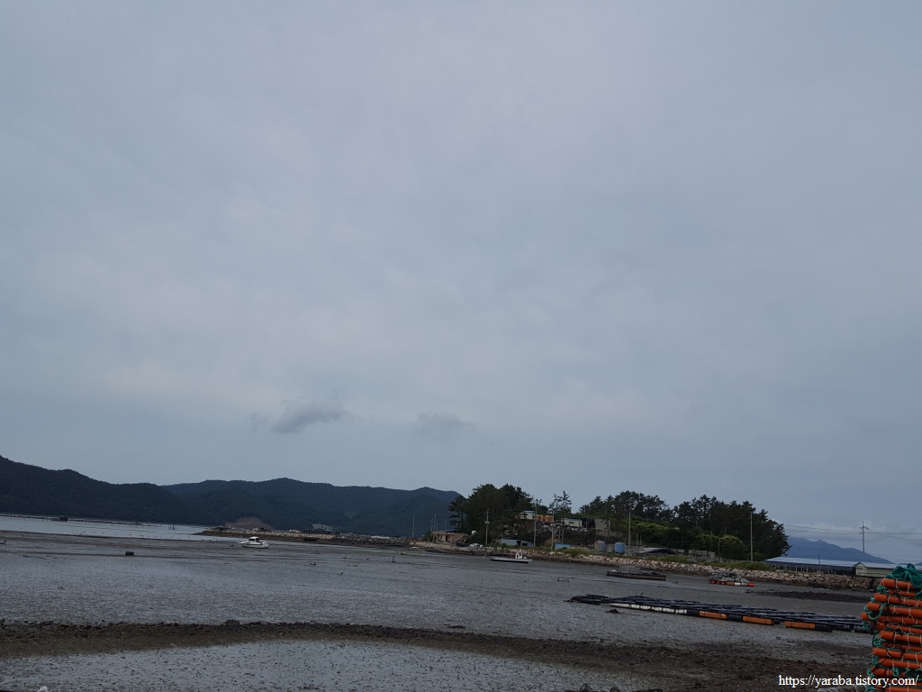 마량항의 물때가 오늘은 오전 8시 24분이 간조였으니 지금은 물이 완전히 빠졌다가 조금씩 들어오기 시작하는 시간이다. 북쪽으로는 외호도 섬도 시야에 들어온다.
