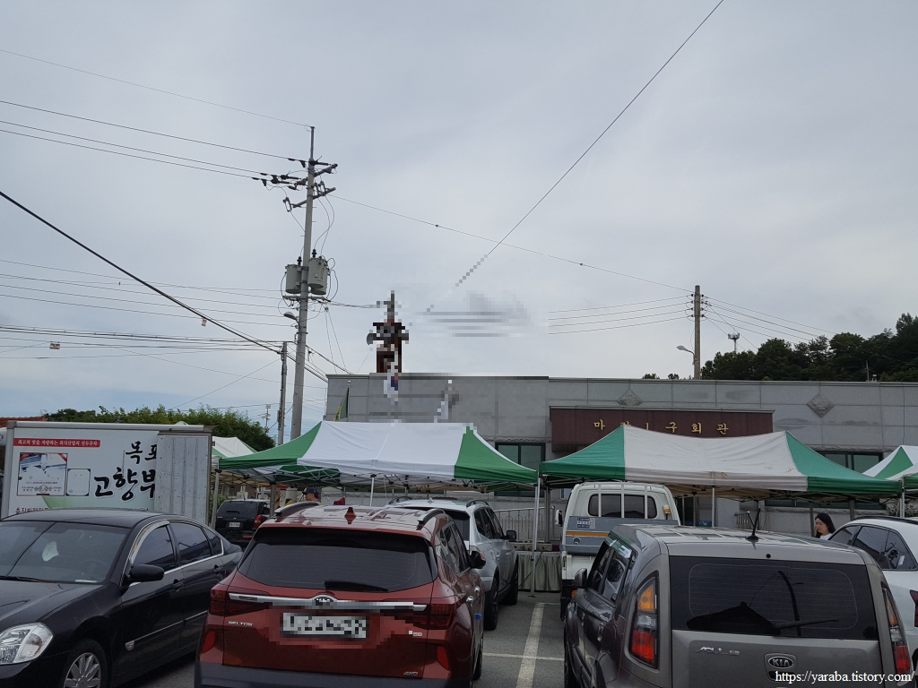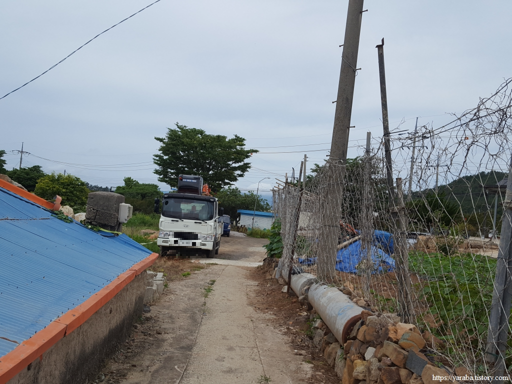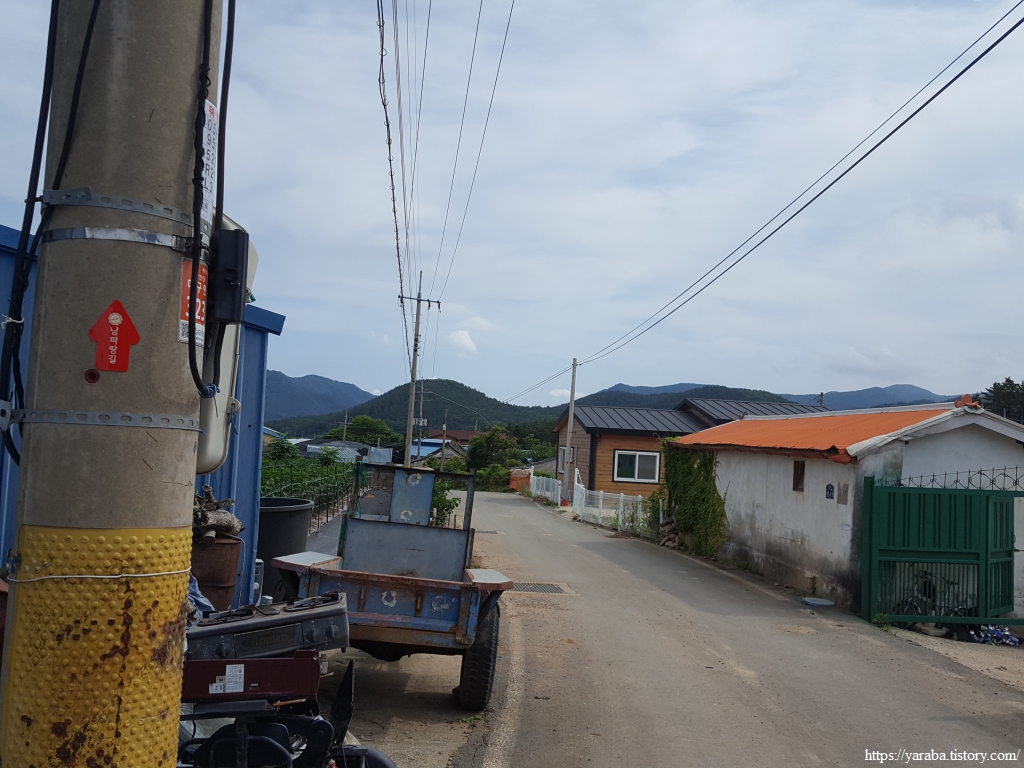 마량 1구 마을 회관 앞에서는 무슨 잔치가 있는지 출장 뷔페 차가 오고 분주하다. 길은 마을 회관 옆을 통과해서 골목길을 통해 북쪽으로 이동하며 마을 빠져나간다.