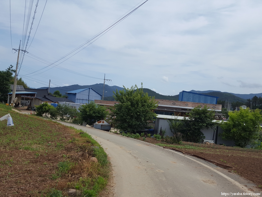 바로 앞으로는 계곡과 함께 산 아래에 자리한 구곡마을 전경이 펼쳐진다.