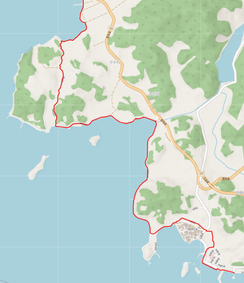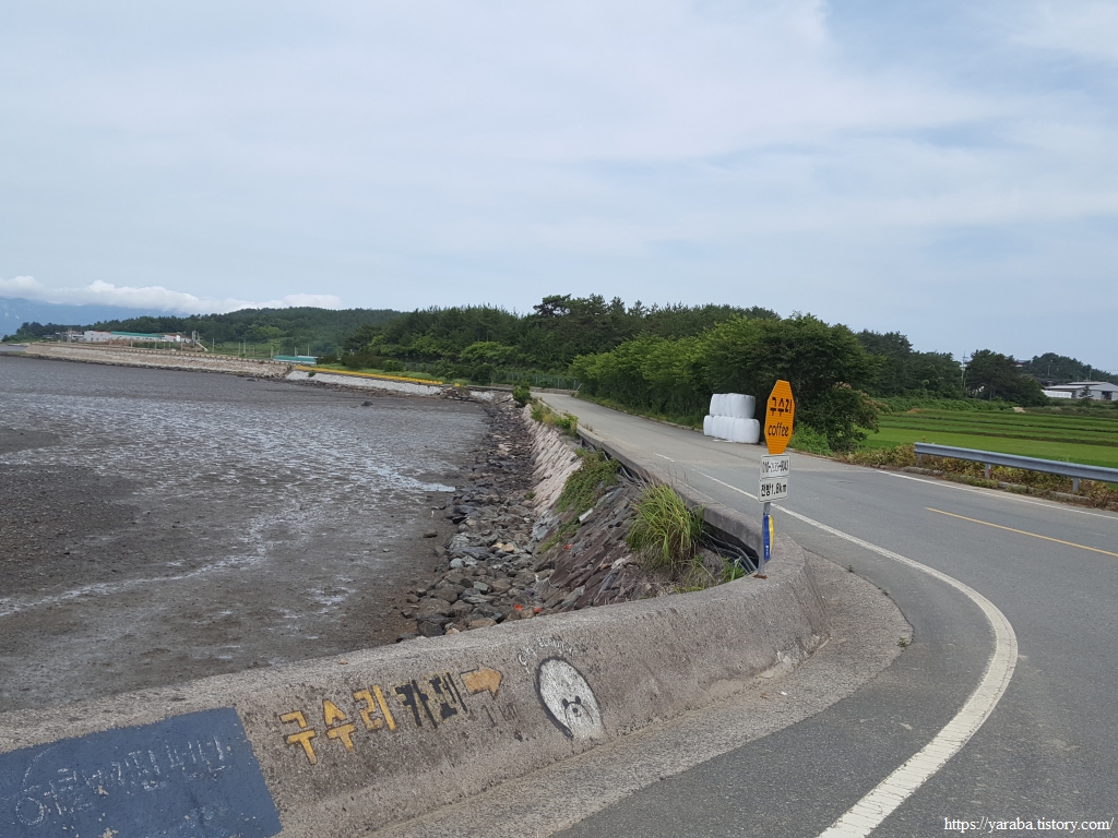 길은 구수리 카페 주차장 방면으로 우회전하여 남호 마을을 향해 고개를 오른다. 강진군 마량면에서 대구면 구수리로 넘어온 상태다.