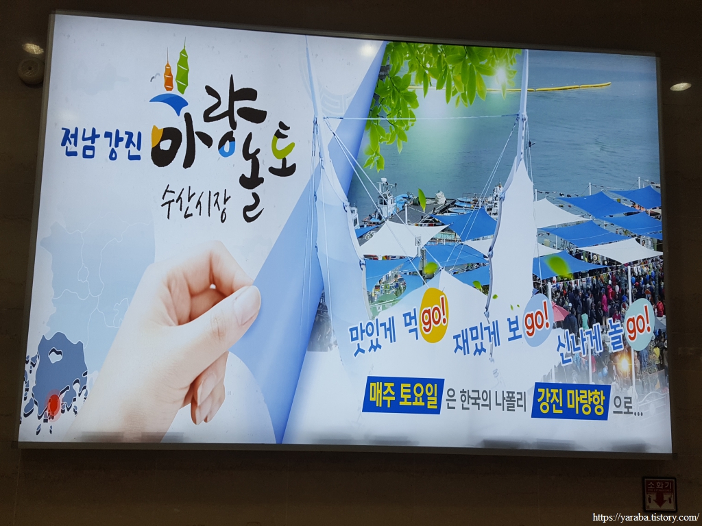 농번기의 할 일을 열심히 하다 보니 다시 짬을 내서 남파랑길 걷기를 하게 되었다. 이제는 광주 터미널과 친해질 시간인 모양이다. 광주 터미널에서 강진을 거쳐 마량을 지나는 버스를 예배해서 버스 시간을 기다리고 있는데 터미널 광고판에 마량 놀토 수산시장 광고를 보니 왠지 반가운 느낌이다. 이탈리아 나폴리를 가보지 못했으니 "한국의 나폴리 강진 마량항"이란 문구가 가슴에 와닿지는 않는다. 아무튼 지난번 여행에서 마량에서 광주로 가는 버스를 기다리면서 마량 놀토 수산시장을 방문했던 즐거운 기억이 떠오르며 지난번 여행과 자연스레 이어지는 것 같다.