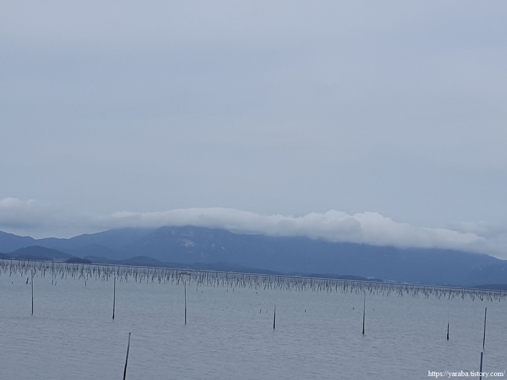강진 도암만 바다 건너로는 구름을 머리에 이고 있는 대둔산, 두륜산, 주작산으로 이어지는 산능선이 남북으로 길게 이어진다. 바다는 양식에 사용되는 수많은 기둥들이 수몰댐을 보는 듯하다. 도암만을 강진만이라고도 부르는데 경남 남해군에도 강진만이 있어서 구별하기 위해 도암만으로 부르는 사람도 있는 모양이다.
