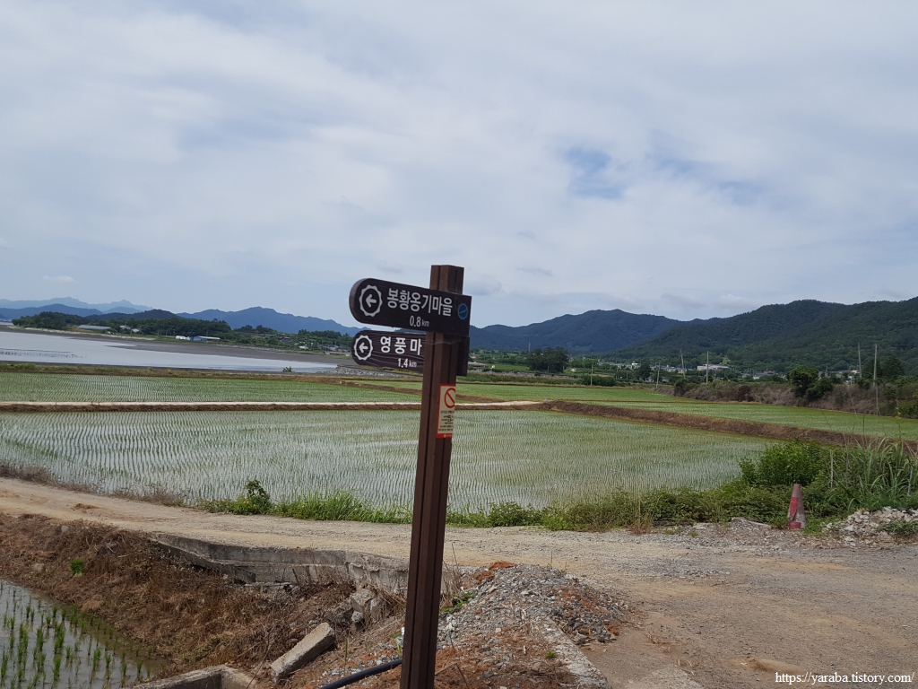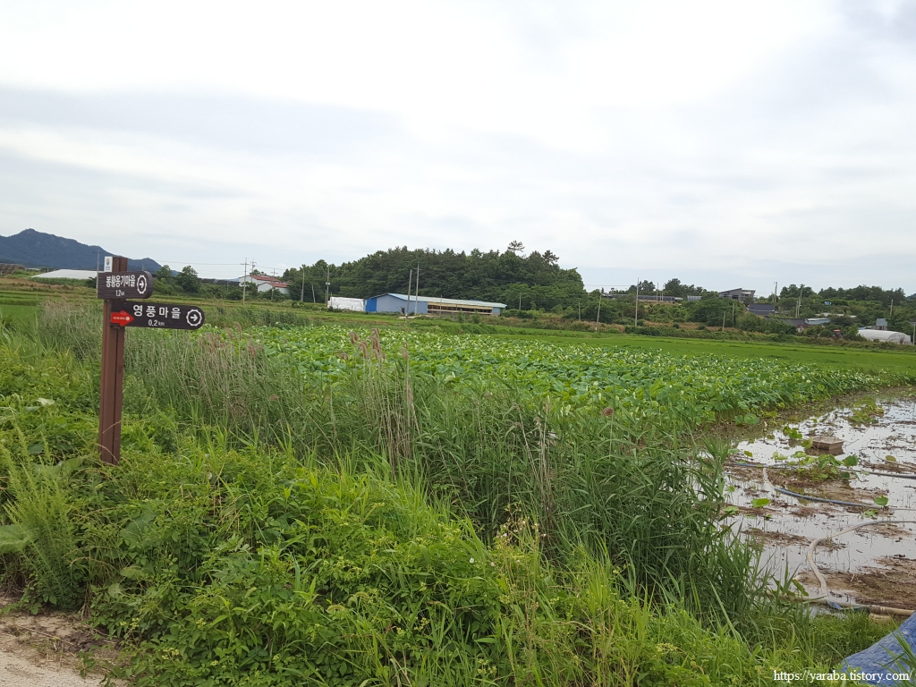 둑방길을 걷는 길은 영풍 마을에서 내려오는 개천을 건너 우회전하여 마을 안으로 들어간다. 마을 입구에는 연밭이 있었다.