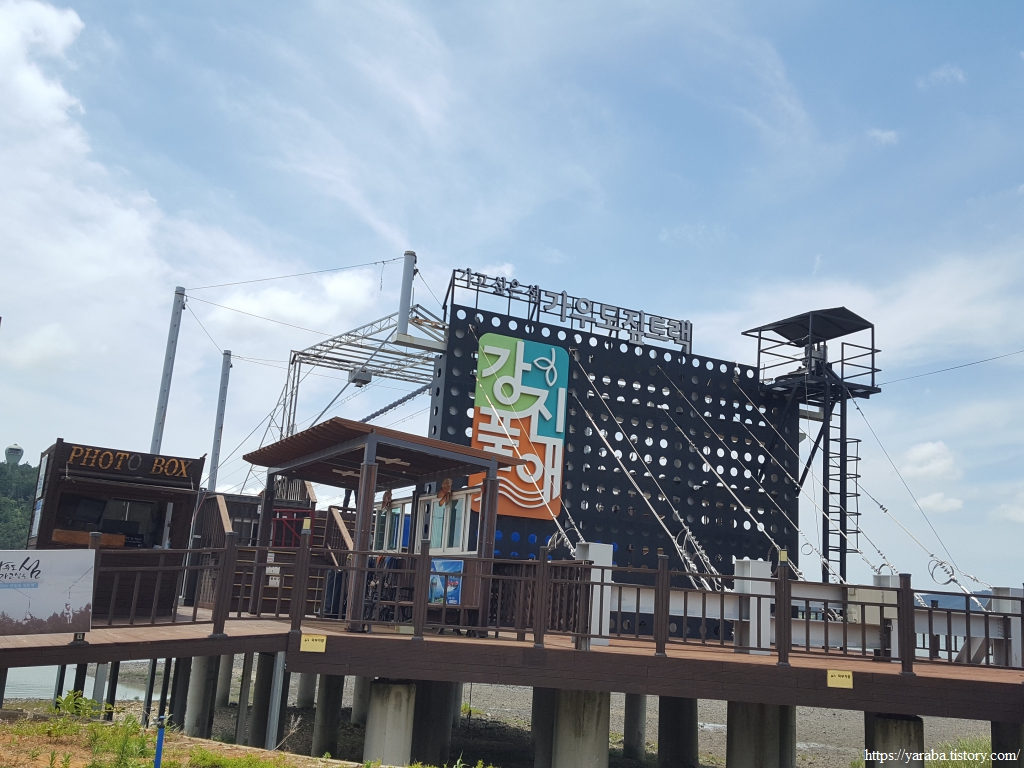 바다 건너 가우도에 있는 청자 타워에서는 짚트랙이 내려오고 출렁다리도 보인다. 가끔씩 고객 없는 제트보트가 섬 앞에서 물을 가르며 사람들의 호기심을 끈다.