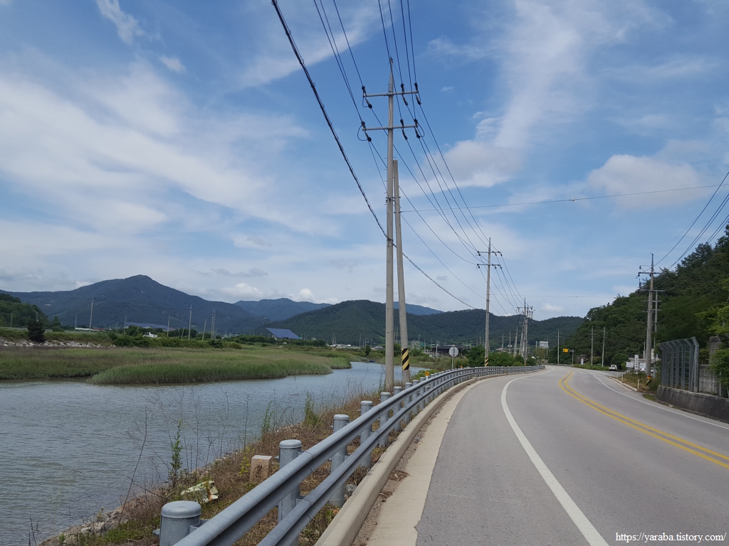 길은 청자로 국도로 나와 도로변을 걸어 내려간다.