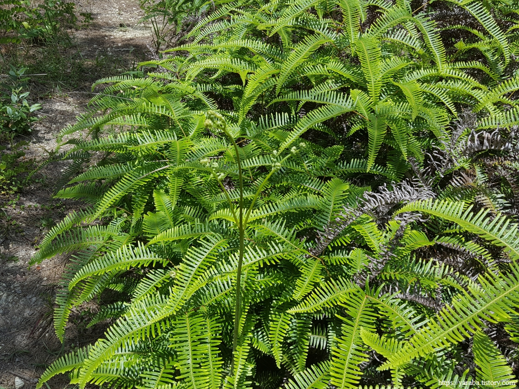 활짝 핀 고사리 잎 사이로 새로운 고사리가 삐죽 대를 올렸다. 언제나 손을 뻗어 주기를 뜯고 싶은 충동을 일으키게 하는 그림이다. 물론 이것이 식용 가능한 고사리인지는 모른다. 전 세계적으로 12,000 종이 넘는 고사리류가 있다고 하니 무외한이 알리가 만무하다. 꽃이 피지 않고 홀씨로 번식하는 양치식물이지만 재배하시는 분들은 포자로 모종을 만들거나 뿌리를 캐서 이식하는 방법을 사용한다고 한다.