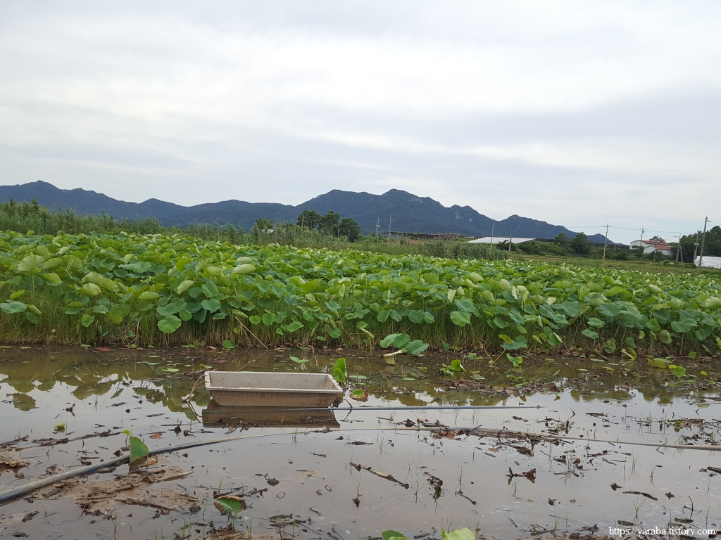 연꽃이 화려한 호수나 연못은 여러 번 보아왔지만 연을 재배하는 연밭은 처음 본다. 물호스와 작업 도구를 보니 다른 밭과 다를 게 없다. 물만 풍부하다면 키워보고 싶은 작물이기도 하다.