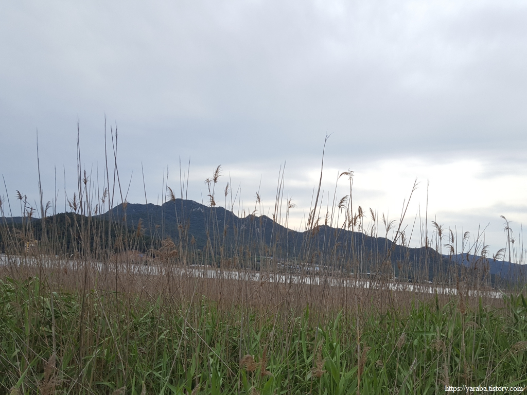 갈대밭 너머로 만덕산의 존재감이 제대로다.
