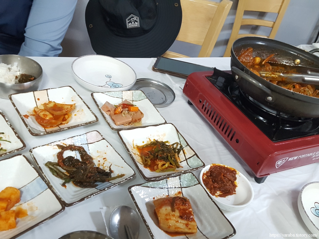 숙소를 정하고 저녁 식사를 하러 터미널 앞 백반집에 갔는데 우리도, 주인장도 생각하지 못한 돼지불백이 나왔다. 메뉴를 시켰는데 주인장이 고기가 얼마 없는데 혹시 돼지 껍데기를 추가해도 괜찮냐고 하신다. 그러라고 하니 돼지 껍데기로 만든 돼지 불백이 나왔다. 아주머니말로는 메뉴에 없는데 추가할까 생각 중이라 하신다. 먹을만했다. 임기응변에 능하신 아주머니 덕택에 신 메뉴를 맛보았다.