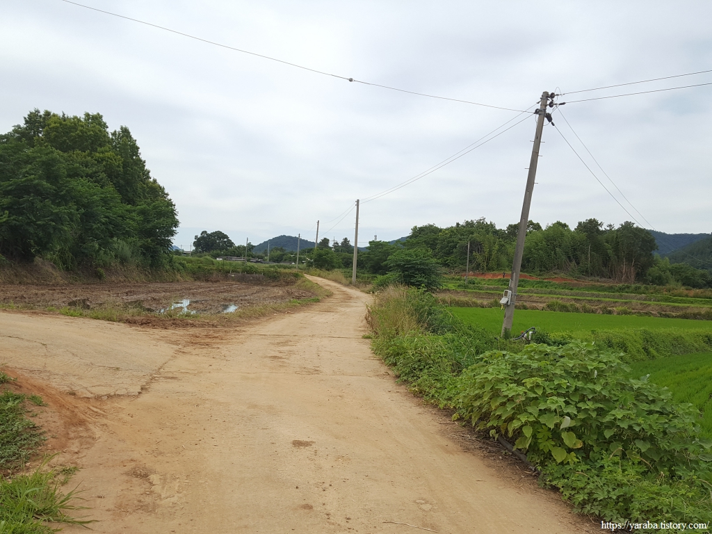 영풍 마을을 지난 길은 바로 이어서 만복 마을로 들어간다. 집주인이 창고 벽면에 쓰신 글이 마음에 와닿는다. "행복을 약속하는 땀을 흘려라. 산이 만복과 건강을 약속한다." 맞는 말이다. 그런데, 집안일이든 밭일이든 무슨 일이든 즐거운 마음으로 땀을 흘리는 것은 축복이다. 일이 아니다.