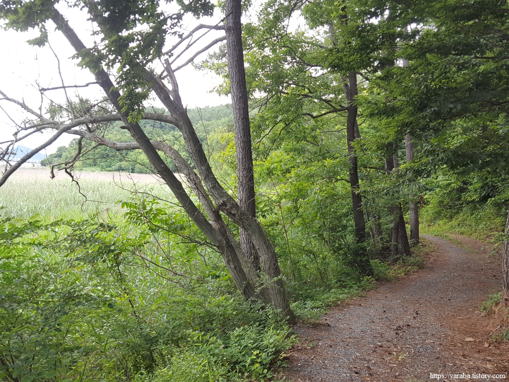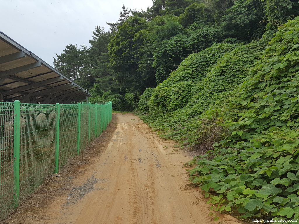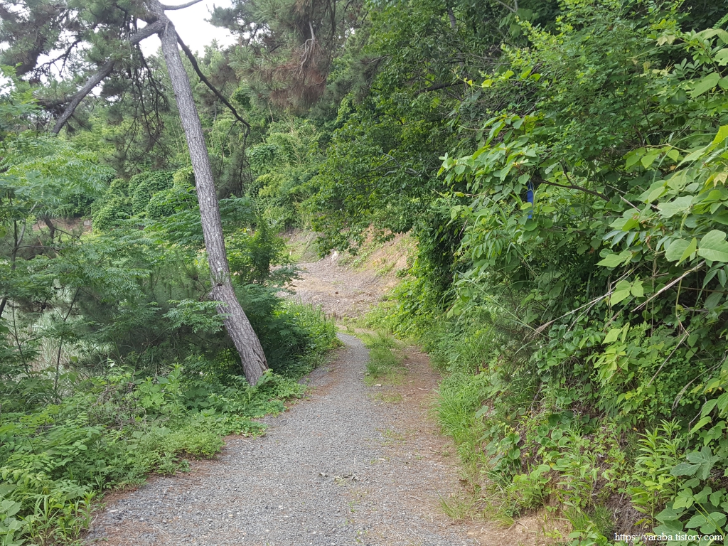 해안 둑방길만 걷던 길에서 의외의 숲길을 만난다.