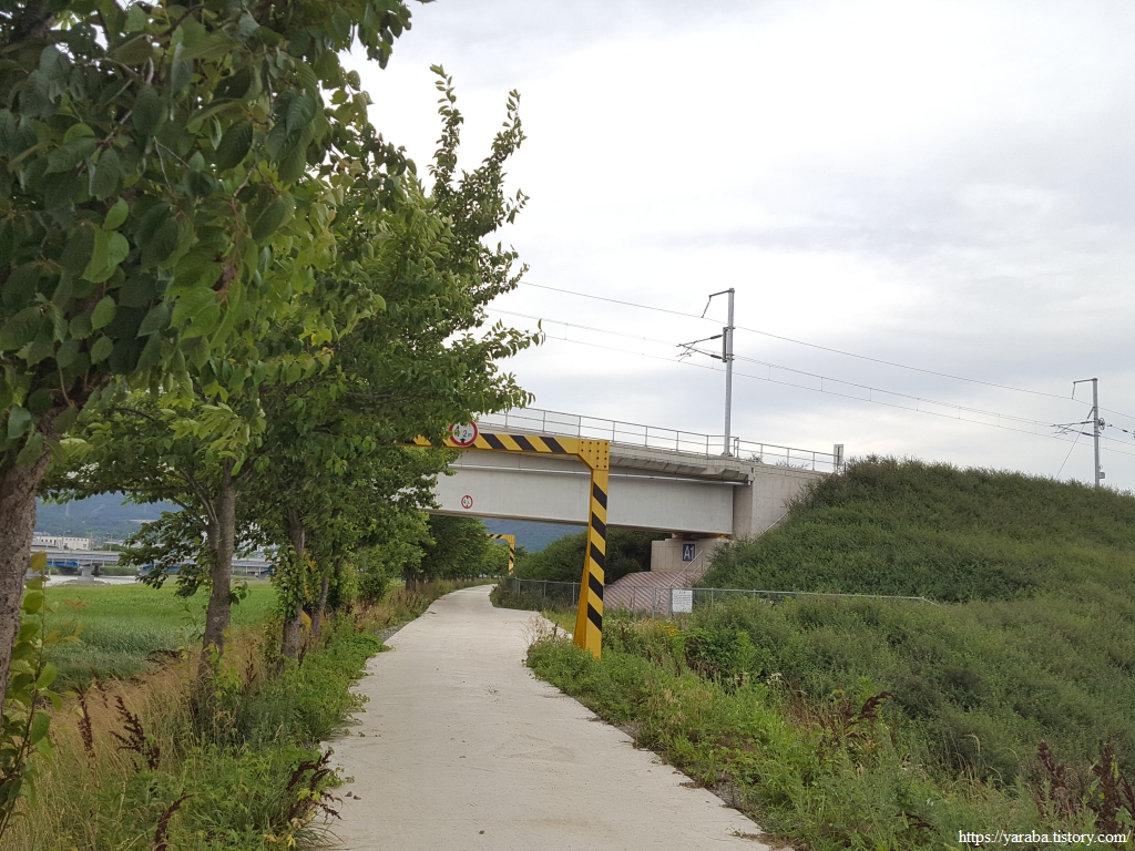 탐진강 둑방길은 경전선 철로 아래를 지난다.