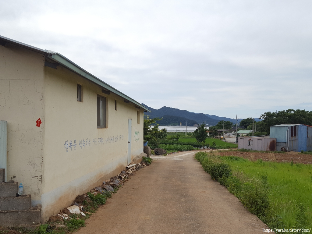길은 만복 마을 인근을 지나 해변으로 나간다. 조금 전에 창고 벽에 쓰인 글귀도 있지만 마을 가꾸기 사업의 일환으로 집집마다 나름의 글귀를 새겨 넣었다고 한다. 마을을 찾는 이를 반기는 "여기는 만복. 행운의 문을 지나는 당신 만복 받으시길 기원드립니다"라는 문구도 있다.