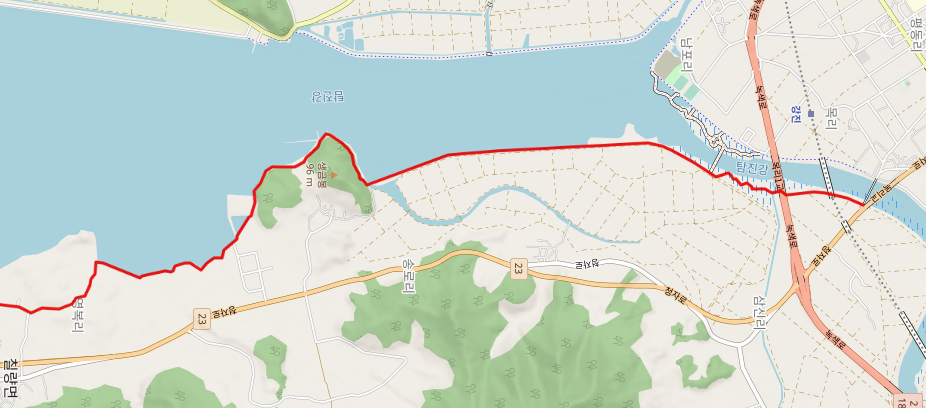 옛 목리교 앞에서 여정을 마무리하고 하룻밤 휴식을 위해서 읍내로 들어간다. 다리 건너 반대편에서 시작할 다음 83코스를 기약한다.