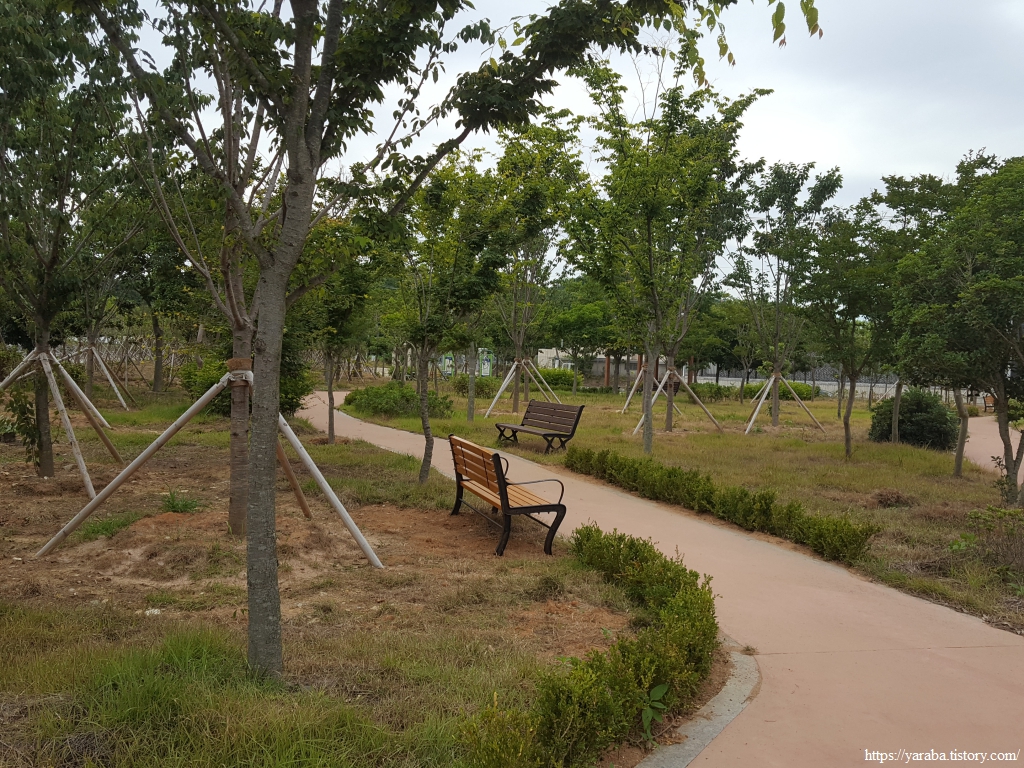 칠량농공단지의 작은 공원에서 잠시 목을 축이고 간다. 공업 단지 특유의 냄새도 없다.