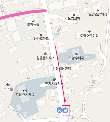 다음날 사초, 좌일, 남창 방면으로 가는 버스를 타고 도암 정류장에서 하차하여 여정을 이어간다. 강진군내버스 시간표는 https://www.gangjin.go.kr/contents/24272/bus_211013.pdf에서 확인할 수 있다.