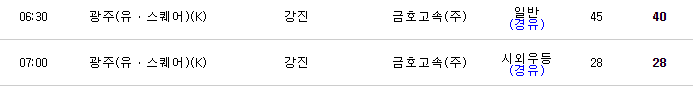 광주역 인근에 저렴한 숙소가 많으므로 하루 전에 광주에 내려와 하룻밤 쉬고 광주역 앞에서 좌석 02 버스를 타고 광주 종합 버스 터미널로 이동한다. 첫차도 빠르고 버스도 많으므로 이동에 적절할 것으로 보인다.