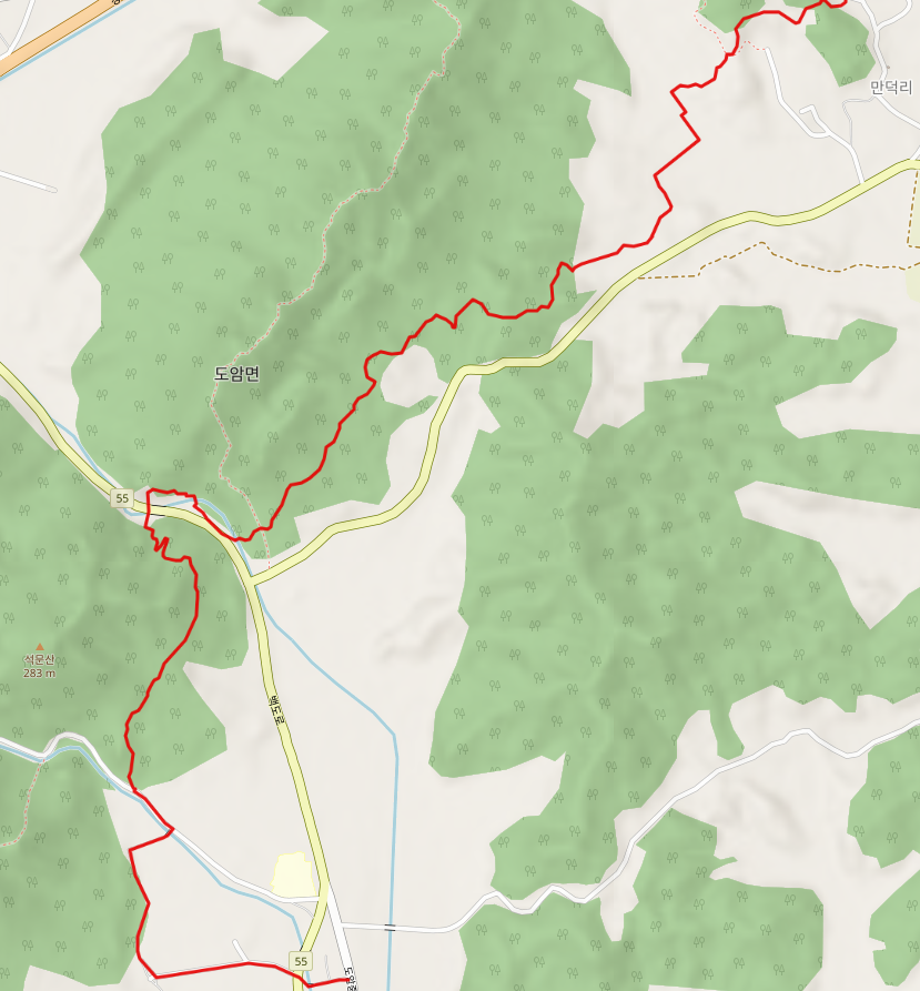 다산초당에서 내려온 길은 임도와 오솔길을 통해서 도암석문공원(14.8Km)을 거쳐서 도암농협 앞에서 여정을 마무리한다.