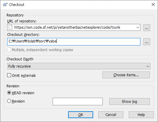 야베의 소스코드 리포지토리는 서브버전(Subversion)을 사용하고 있으므로 아래의 명령으로 체크아웃받거나 나름 사용하는 도구를 통해 소스코드를 체크아웃받는다. 필자는 TortoiseSVN을 사용한다.