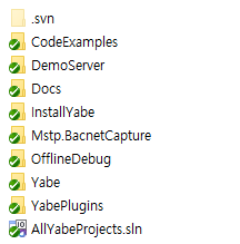 소스를 체크아웃받은 폴더의 모습은 위의 그림과 같다. AllYabeProject.sln을 더블클릭하여 솔루션을 연다.