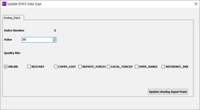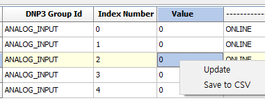 무료 버전은 시간이 지나면 작업 내용이 사라질 수 있으므로 File> Save 메뉴로 현재 설정을 저장해 놓으면 테스트 작업을 무리 없이 진행할 수 있다. 앞선 작업에서 [Load Configuration]을 클릭하면 위의 그림처럼 [Data Objects] 탭으로 넘어가면서 앞서 정의한 오브젝트 목록을 확인할 수 있다. 오브젝트의 구조를 보면 BACnet 프로토콜과 유사해 보이기도 한다. 값 항목을 우측 마우스로 클릭하여 "Update"를 선택하면 해당 오브젝트의 값을 변경할 수도 있다. 정확한 테스트를 위해서는 아웃스테이션에서 값을 변경했을 때 마스터에서도 그대로 반영되는지 확인하는 것이 필요하므로 이 작업은 꼭 기억해야 한다.