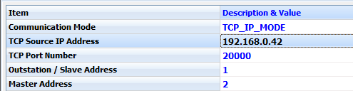 그림에서 보듯이 시리얼 모드, TCP, UDP 모드로 서버를 설정할 수 있으므로 테스트하려는 서버 형태를 선택하고 IP 주소와 포트와 같은 필요한 설정을 보완한다. 기본적으로 TCP모드로 127.0.0.1의 20000 포트를 사용하도록 추가되는데 변경하고자 하는 항목을 클릭하여 적절하게 변경한다. 필자는 테스트를 위하여 IP 주소만 바꾸어 주었다.